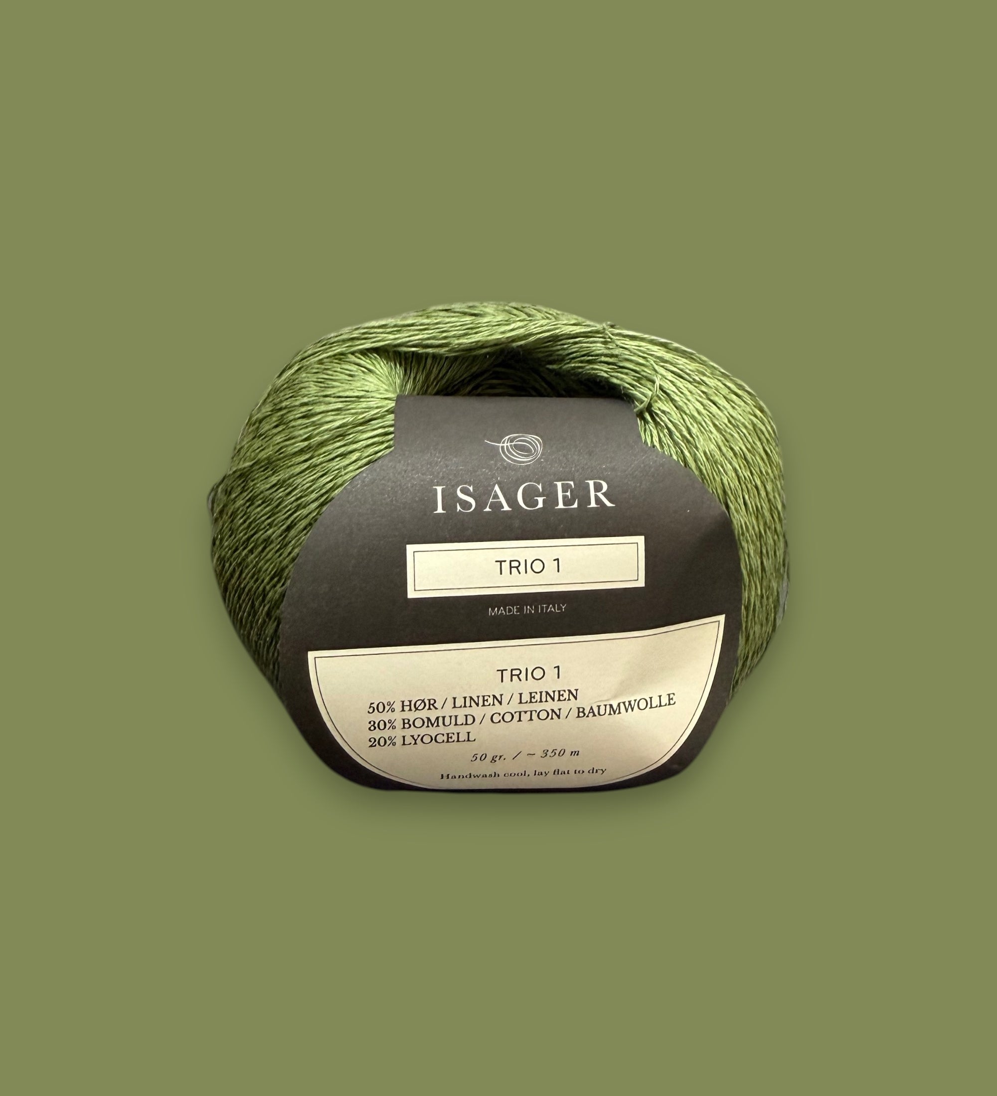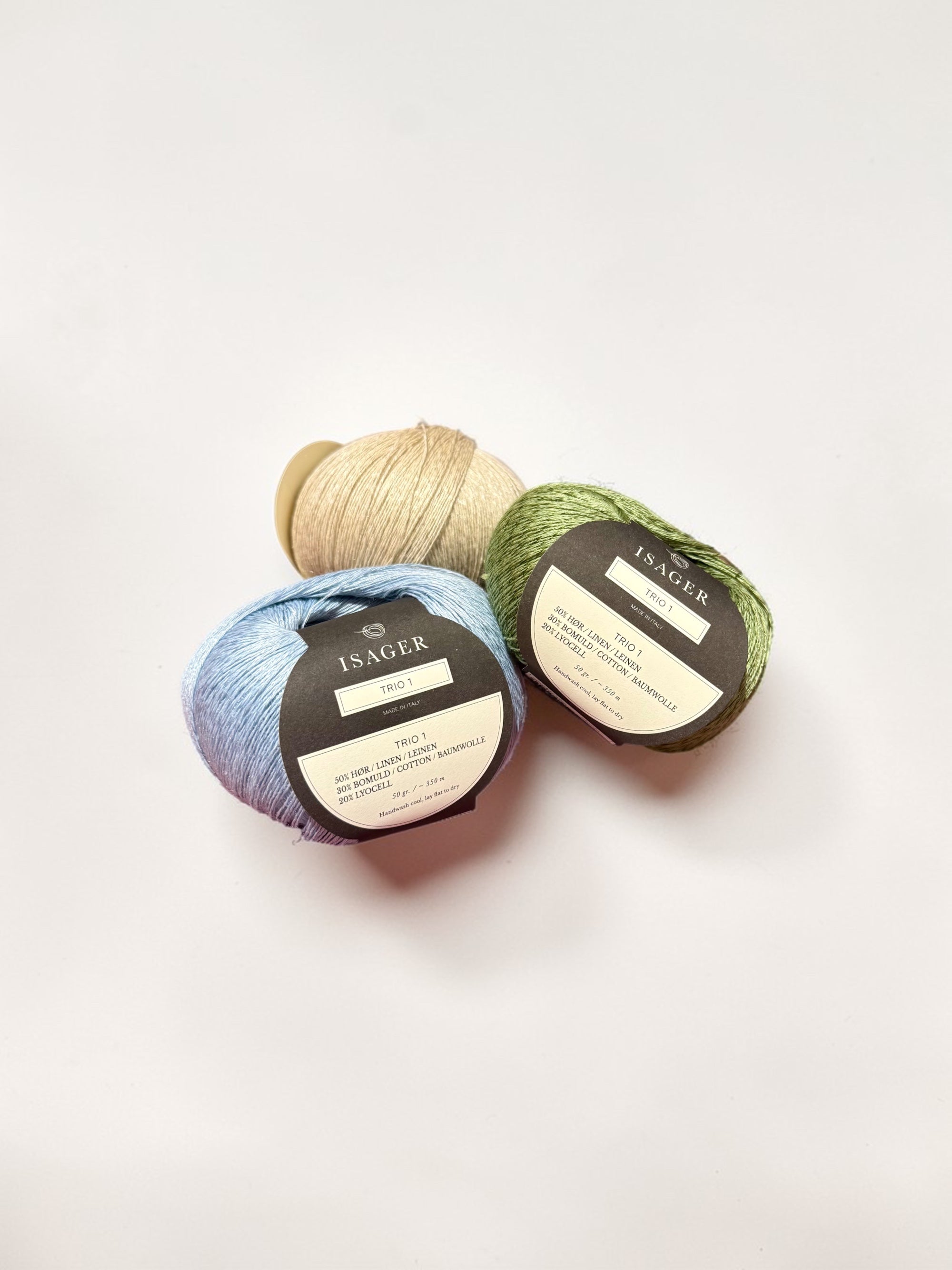 Trio 1 von Isager ist ein feines Sommergarn mit einer sehr langen Lauflänge von ca. 350 m auf 50 g. Es kann einzeln für feine, leichte Projekte verarbeitet werden oder mehrfädig bzw. in Kombination mit anderen Garnen, um Struktur, Tiefe oder eine andere Garnstärke zu erzielen.