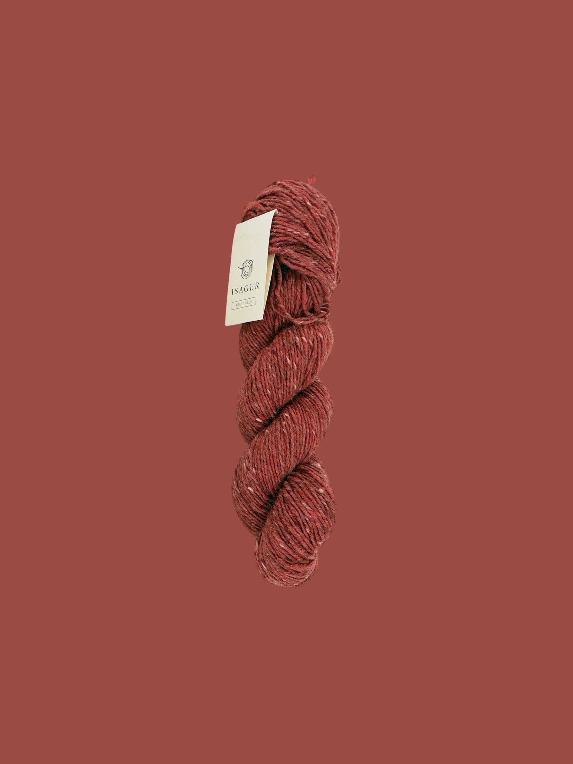 Aran Tweed von Isager ist ein robustes Tweedgarn aus 100 % mulesingfreier Schurwolle, das in Irland, wie ein echtes Donegal Tweed gefertigt wird. Es kombiniert einen robusten, natürlichen Griff mit der für Tweed typischen rustikalen Struktur. Mit etwa 160 Metern Lauflänge pro 100 Gramm und einer empfohlenen Nadelstärke von 5,0 bis 5,5 mm entstehen warme, strapazierfähige Projekte, die ideal für Outdoor-Pullover und rustikale Jacken sind. Die eingestreuten bunten Noppen sorgen für den unverkennbaren Tweed-Charakter. Handwäsche wird empfohlen.
