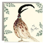 Eine Grußkarte illustriert mit einem Fasan und einem handgeschriebenen Text „The Big Man“. Innen leer gelassen, damit Sie Ihre eigene Nachricht schreiben können.