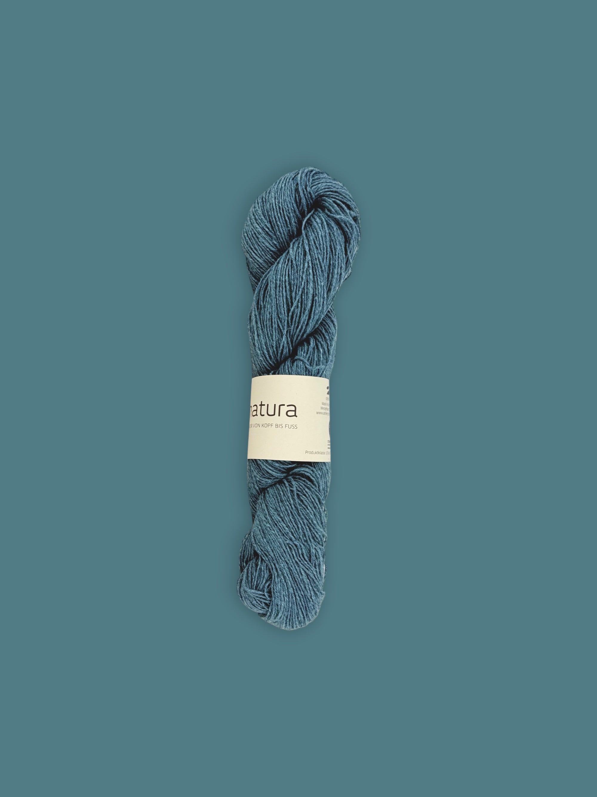 Farbe 2409 ist ein gedecktes Petrolblau mit kühler Tiefe – ruhig, klar und leicht grünlich unterlegt. Die feine Melierung bringt dezente Bewegung ins Maschenbild und verleiht der Nuance eine natürliche Lebendigkeit. Die Farbe erinnert an tiefes Wasser oder bewölkten Himmel über dem Meer. Ideal für Projekte mit stiller Farbigkeit und ausgewogener Präsenz.