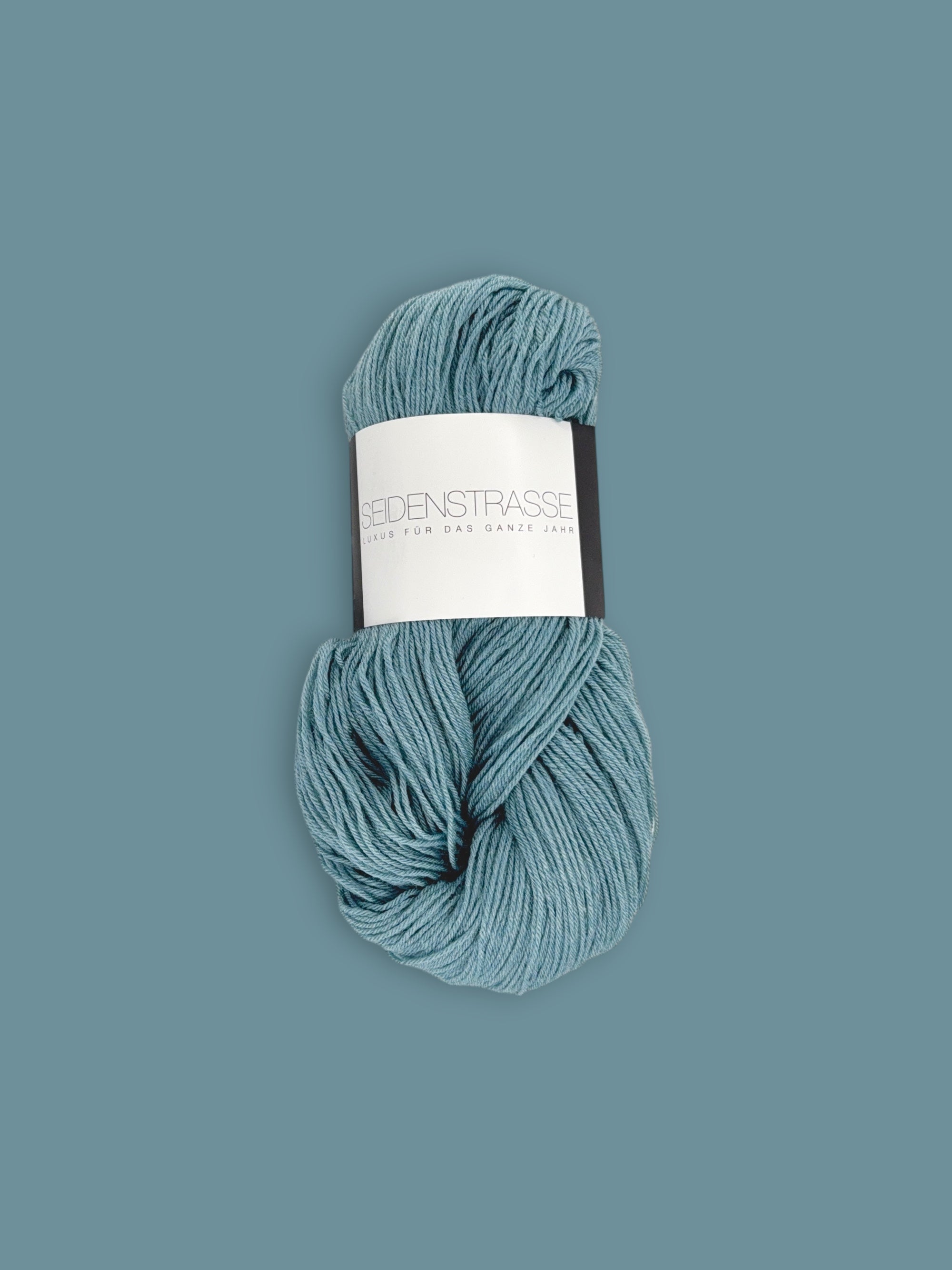 In der Qualität Seidenstraße von Atelier Zitron bringt der seidige Schimmer eine elegante Tiefe und ein feines Spiel von Licht ins Maschenbild. So entsteht eine stille, fast glasige Leuchtkraft, die dem Farbton eine besondere Raffinesse verleiht.