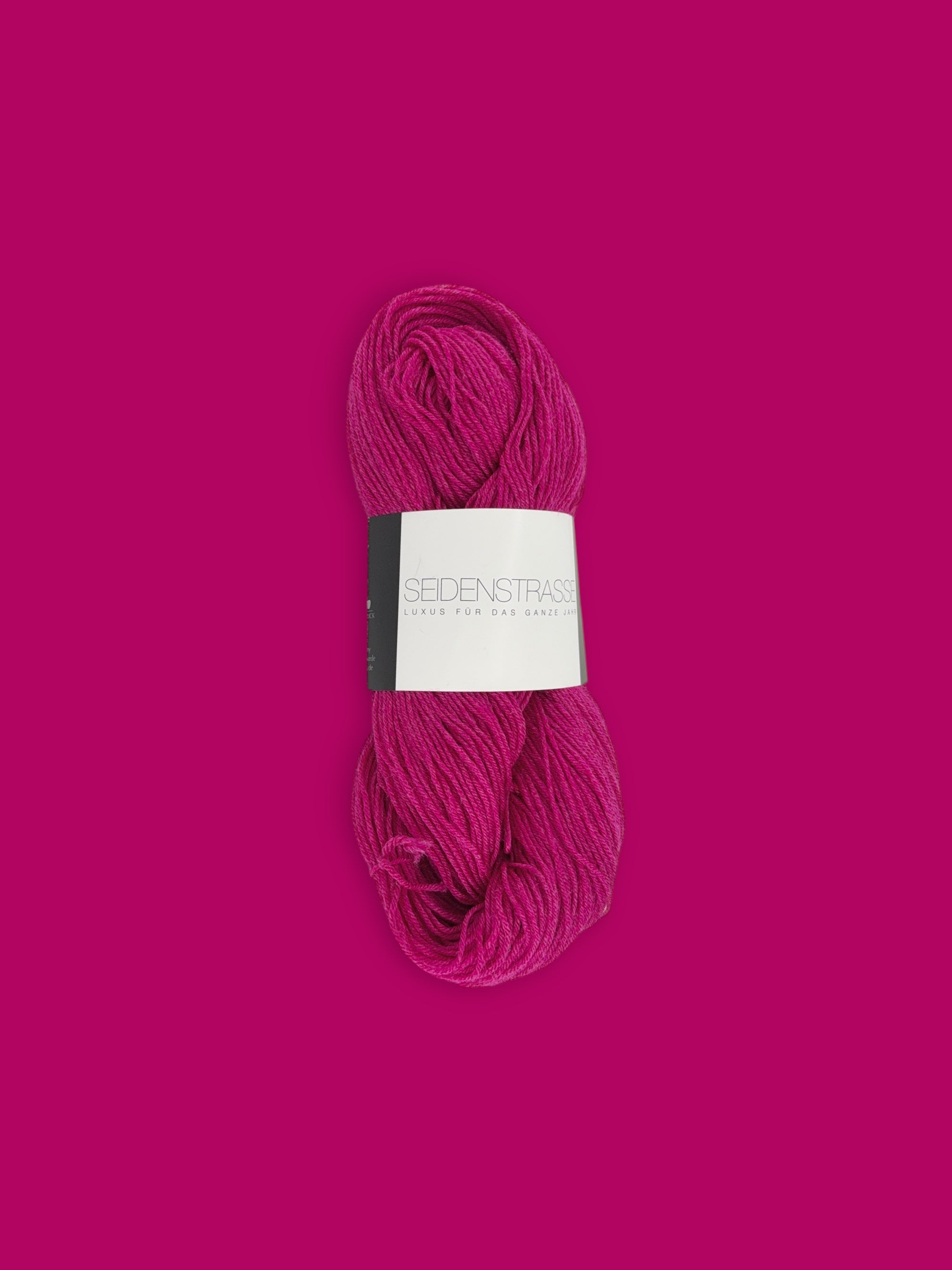 In der Qualität Seidenstraße von Atelier Zitron bekommt diese kräftige Nuance durch den feinen Seidenschimmer eine luxuriöse Tiefe: Das Maschenbild wirkt intensiv, elegant und zeigt im Licht eine weiche Leuchtkraft mit leicht kühlem Unterton.