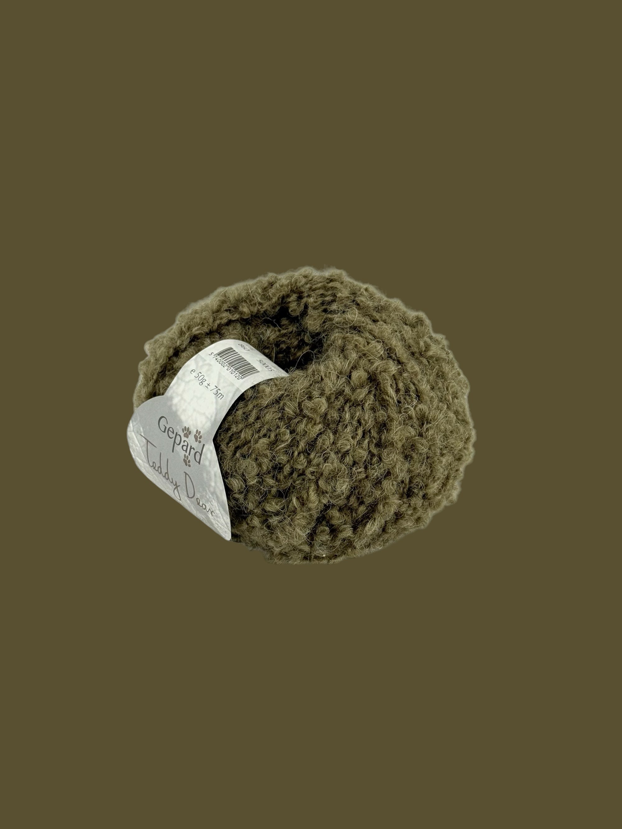 Ein gedecktes Olivgrün mit natürlicher Tiefe. Die Farbe erinnert an dunkle Oliven oder getrocknetes Laub – ruhig, erdig und angenehm unaufdringlich. Die flauschige Garnstruktur verleiht dem Ton eine weiche Oberfläche und macht ihn ideal für Projekte mit zurückhaltender Farbe und natürlichem Charakter.