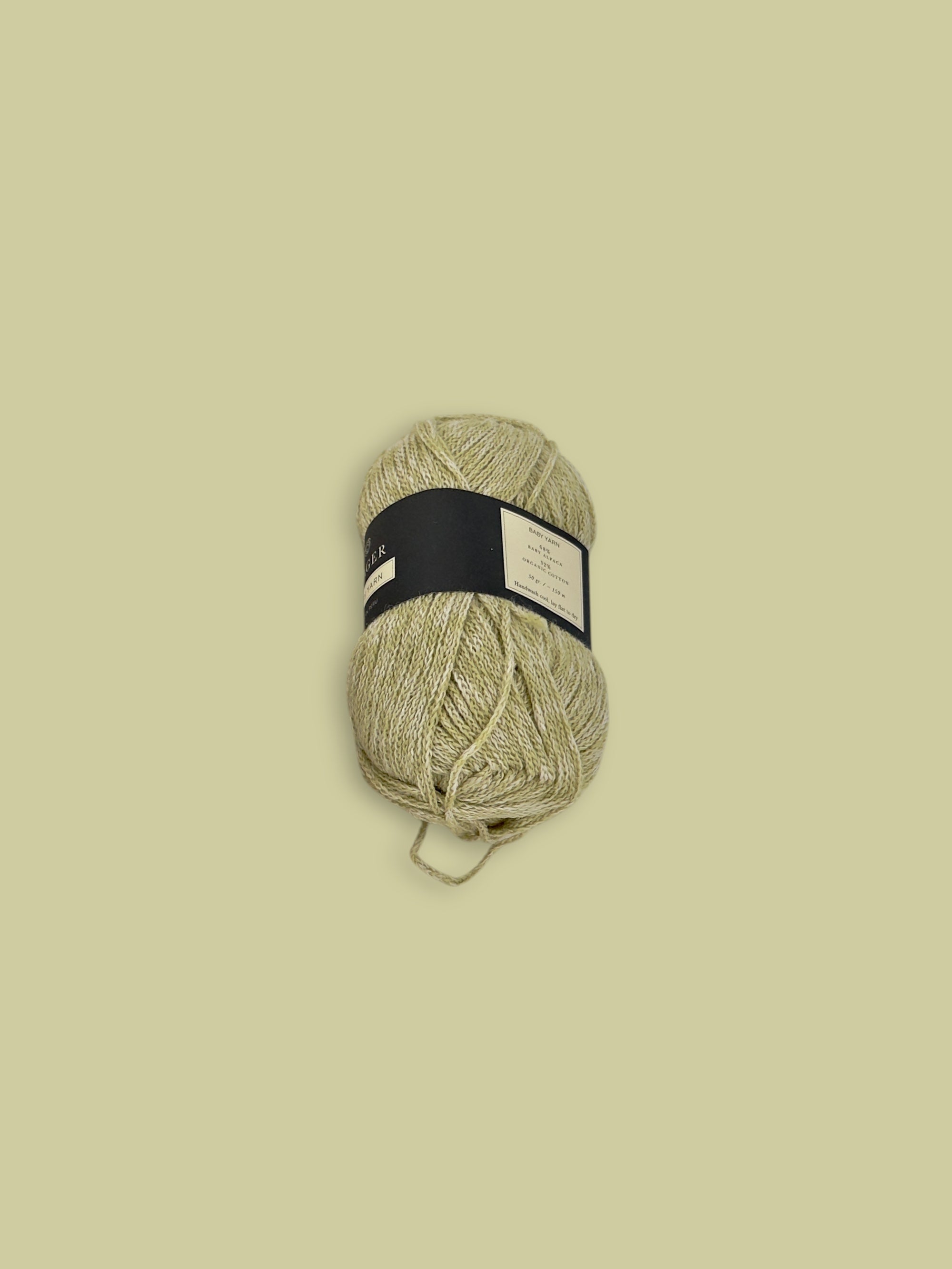 Farbe 57 ist ein sanftes, helles Gelbgrün mit gedämpfter, natürlicher Ausstrahlung – freundlich, ruhig und fein abgestimmt. Der cremefarbene Kettenfaden bringt eine zarte Melierung ins Maschenbild und verleiht der Nuance zusätzliche Tiefe und Lebendigkeit. Die Wirkung bleibt weich und ausgewogen. Eine helle, vielseitige Farbe für Projekte mit stiller Farbigkeit und feiner Struktur.