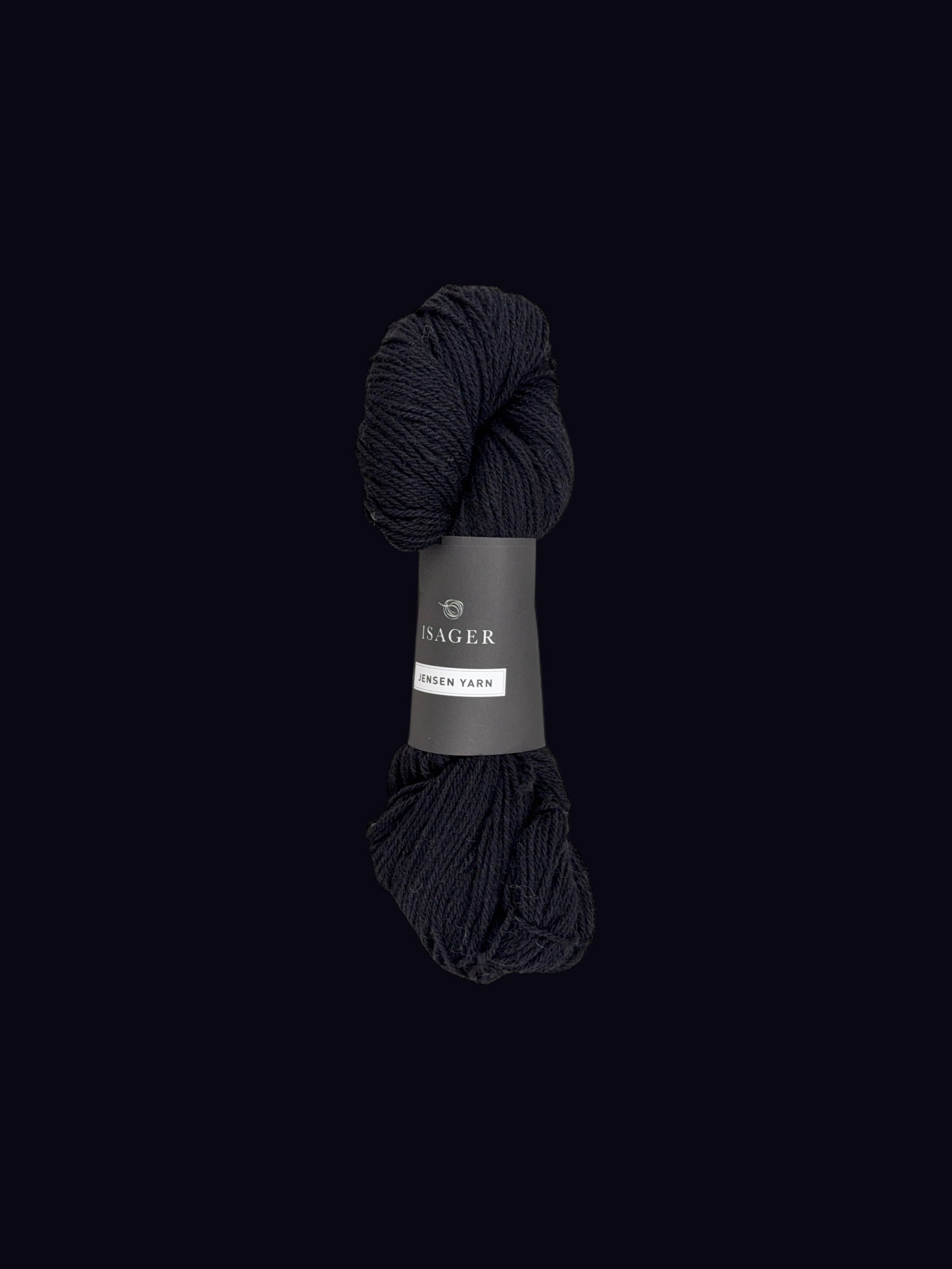 Farbe 30 ist ein fast reines Schwarz mit minimalem Violett- oder Blaustich – tief, kühl und konzentriert. Die Nuance wirkt auf den ersten Blick wie Schwarz, offenbart aber bei genauem Hinsehen eine feine, farbliche Tiefe, die dem Ton Charakter verleiht. Die matte Struktur des Jensen-Garns unterstreicht diesen Effekt und bringt eine subtile Lebendigkeit ins Maschenbild. Eine kompromisslos dunkle Farbe für Projekte mit klarer Aussage, eleganter Zurückhaltung und grafischer Präzision.