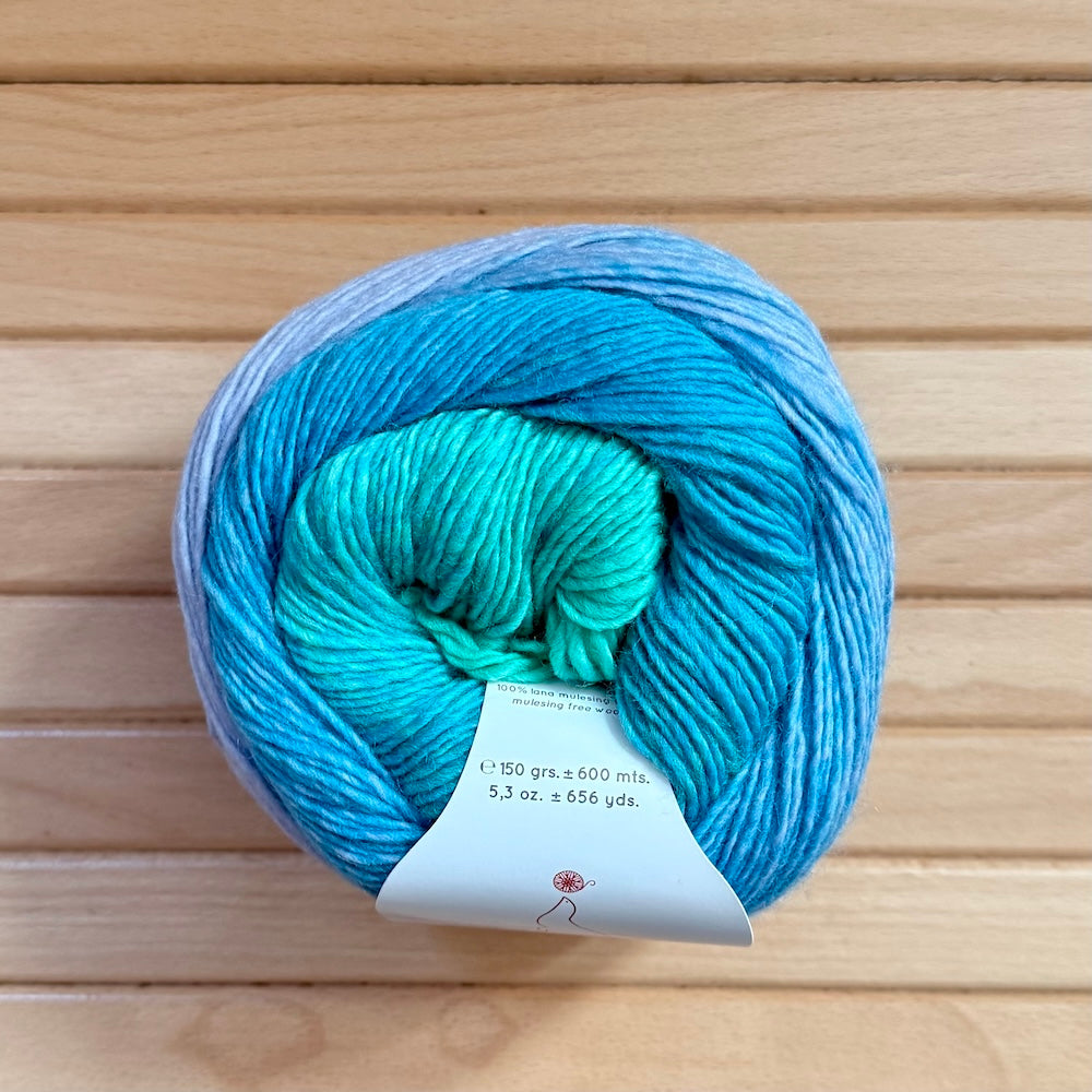 Poema von Laines du Nord ist ein hochwertiges Garn aus 100 % mulesingfreier Merinowolle – wunderbar weich, anschmiegsam und mit sanft fließenden Farbverläufen. Die feine Struktur und der elegante Dégradé-Effekt machen Poema zu einem echten Blickfang – ideal für besondere Stücke mit Farbwirkung.