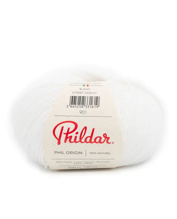 Phil Origin von Phildar ist ein hochwertiges Garn aus 100 % Baumwolle, das sich durch seine besondere Optik und angenehm seidige Haptik auszeichnet. Mit einer Lauflänge von ca. 225 Metern auf 50 Gramm und einer empfohlenen Nadelstärke von 3,0 mm eignet es sich hervorragend für eine Vielzahl von Strickprojekten. Die Maschenprobe beträgt 25 Maschen x 36 Reihen auf 10 cm. Das Garn ist maschinenwaschbar bei 30 °C im Wollwaschgang und sollte nicht gebügelt werden.