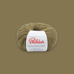 Farbe olive ist ein heller, gedämpfter Braungrünton mit natürlicher Tiefe und ruhiger Ausstrahlung. In der Qualität Phil Soie Merino von Phildar entsteht daraus ein glattes, gleichmäßiges Maschenbild mit feinem Schimmer, der den erdigen Charakter elegant unterstreicht – dezent, edel und vielseitig kombinierbar.