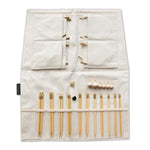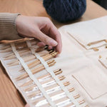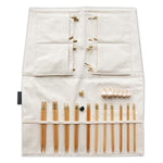 Die Kabel sind äußerst flexibel und dank der nahtlosen Drehverbindung zu den Nadelspitzen gehört lästiges Knicken oder Verdrehen der Vergangenheit an! Das Set kommt in einem stilvollen faltbaren Etui aus ungebleichter Baumwolle daher, das über genügend Fächer verfügt, um Nadelspitzen, Kabel, Verbinder, Stopper und übriges Strickaccessoires übersichtlich aufzubewahren.