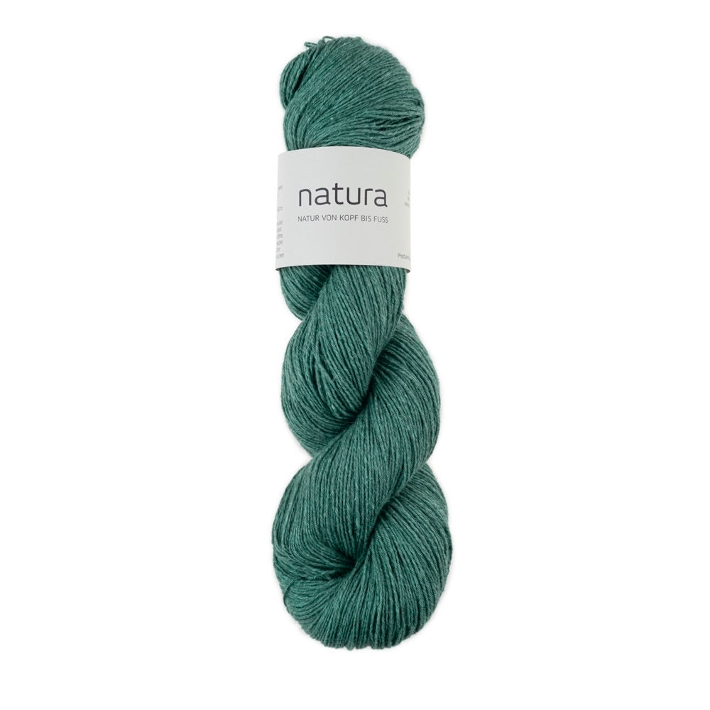 Das Glöckchen Tee von Sharon Maninger alias Kleinigkeitenliebe strickst Du nahtlos von oben nach unten mit Nadelstärke 4mm (doppelfädig). Du beginnst bei der icord-Kordelkante am Halsausschnitt, die Du direkt mit dem Maschenanschlag verbindest. Es folgt die Rundpasse, erst ein Stück in Reihen mit ganz vielen Zunahmen um den Glockencharakter des Tee's zu kreieren, dann wie gewohnt (in Runden) weiter. Verkürzte Reihen am Rücken sorgen für eine angenehme Passform. Wer möchte verziert die Abschlüsse mit einem schmalen Lochmuster um ein Band oder eine Kordel einzuziehen (nicht im Paket enthalten). Sharon's Tee ist gestrickt aus Natura in der Farbe 2401. Die ganzjährige Materialmischung der Natura ist herrlich griffig und sogar bei 40° waschbar, da dieses Garn zur Kopf bis Fuß Kollektion der deutschen Marke Atelier Zitron gehört.