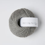 Den Cinema Sweater von Veronika Lindberg strickst Du nahtlos von oben nach unten mit Nadelstärke 4,5mm (Bündchen 3mm) doppelfädig. Die Passe strickst Du mit Raglanzunahmen, ein paar verkürzte Reihen nach dem doppelten Halsbündchen sorgen für eine angenehme Passform. Veronika’s Pullover ist gestrickt aus Merino in der Farbe pearl gray /perlegrå. Die mulesingfreie Merinowolle von Knitting for Olive ist dank ihrer langen Lauflänge herrlich leicht, auch wenn man sie doppelfädig verarbeitet.