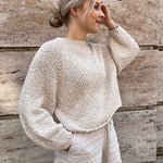 Den My Bohemian Jumper von Norgardknitters strickst Du nahtlos von oben nach unten mit Nadelstärke 5mm (Bündchen 4mm). Die Passe formst Du mit Raglanzunahmen. Der gezeigte Pullover ist gestrickt aus Cotton Waves von Gepard Garn in der Farbe 102. Die dickere Baumwolle, Leinen Mischung hat einen überraschend weichen Griff und einen leicht unregelmäßigen Faden, was die leicht wellige Struktur im Maschenbild erreicht - "Cotton Waves" halt :) Dank der mittleren Nadelstärke ist er ein wunderbarer Übergangspullover, der aber auch an windig kühlen Sommerabenden angenehm zu tragen ist.