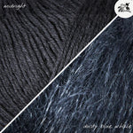 Den RibWave Sweater von Joanna Aug strickst Du nahtlos von oben nach unten mit Nadelstärke 4mm (Bündchen 3mm). Die Passe mit überzogenen Schultern strickst Du jeweils für sich in Reihen, am Hals sorgen German short Rows (verkürzte Reihen) für eine bessere Passform. Ab den Armausschnitten geht’s dann weiter in Runden. Für die Ärmel nimmst Du am Schluss aus den Armausschnitten Maschen auf und strickst sie jeweils für sich herunter. Joanna’s Bluse ist gestrickt aus Merino in der Farbe cloud / sky zusammen mit Soft Silk Mohair soft rose / pudderrosa. Das Merinogarn von Knitting for Olive ist selbstverständlich mulesingfrei und wird in Kombination mit Soft Silk Mohair von Knitting for Olive leicht flauschig und herrlich leicht. Beide Garne sind ökotex zertifiziert.