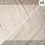 Den RibWave Sweater von Joanna Aug strickst Du nahtlos von oben nach unten mit Nadelstärke 4mm (Bündchen 3mm). Die Passe mit überzogenen Schultern strickst Du jeweils für sich in Reihen, am Hals sorgen German short Rows (verkürzte Reihen) für eine bessere Passform. Ab den Armausschnitten geht’s dann weiter in Runden. Für die Ärmel nimmst Du am Schluss aus den Armausschnitten Maschen auf und strickst sie jeweils für sich herunter. Joanna’s Bluse ist gestrickt aus Merino in der Farbe cloud / sky zusammen mit Soft Silk Mohair soft rose / pudderrosa. Das Merinogarn von Knitting for Olive ist selbstverständlich mulesingfrei und wird in Kombination mit Soft Silk Mohair von Knitting for Olive leicht flauschig und herrlich leicht. Beide Garne sind ökotex zertifiziert.