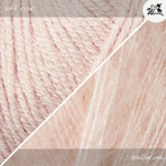 Den RibWave Sweater von Joanna Aug strickst Du nahtlos von oben nach unten mit Nadelstärke 4mm (Bündchen 3mm). Die Passe mit überzogenen Schultern strickst Du jeweils für sich in Reihen, am Hals sorgen German short Rows (verkürzte Reihen) für eine bessere Passform. Ab den Armausschnitten geht’s dann weiter in Runden. Für die Ärmel nimmst Du am Schluss aus den Armausschnitten Maschen auf und strickst sie jeweils für sich herunter. Joanna’s Bluse ist gestrickt aus Merino in der Farbe cloud / sky zusammen mit Soft Silk Mohair soft rose / pudderrosa. Das Merinogarn von Knitting for Olive ist selbstverständlich mulesingfrei und wird in Kombination mit Soft Silk Mohair von Knitting for Olive leicht flauschig und herrlich leicht. Beide Garne sind ökotex zertifiziert.