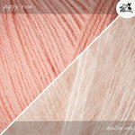 Den RibWave Sweater von Joanna Aug strickst Du nahtlos von oben nach unten mit Nadelstärke 4mm (Bündchen 3mm). Die Passe mit überzogenen Schultern strickst Du jeweils für sich in Reihen, am Hals sorgen German short Rows (verkürzte Reihen) für eine bessere Passform. Ab den Armausschnitten geht’s dann weiter in Runden. Für die Ärmel nimmst Du am Schluss aus den Armausschnitten Maschen auf und strickst sie jeweils für sich herunter. Joanna’s Bluse ist gestrickt aus Merino in der Farbe cloud / sky zusammen mit Soft Silk Mohair soft rose / pudderrosa. Das Merinogarn von Knitting for Olive ist selbstverständlich mulesingfrei und wird in Kombination mit Soft Silk Mohair von Knitting for Olive leicht flauschig und herrlich leicht. Beide Garne sind ökotex zertifiziert.