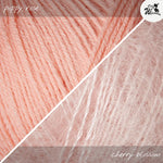 Den RibWave Sweater von Joanna Aug strickst Du nahtlos von oben nach unten mit Nadelstärke 4mm (Bündchen 3mm). Die Passe mit überzogenen Schultern strickst Du jeweils für sich in Reihen, am Hals sorgen German short Rows (verkürzte Reihen) für eine bessere Passform. Ab den Armausschnitten geht’s dann weiter in Runden. Für die Ärmel nimmst Du am Schluss aus den Armausschnitten Maschen auf und strickst sie jeweils für sich herunter. Joanna’s Bluse ist gestrickt aus Merino in der Farbe cloud / sky zusammen mit Soft Silk Mohair soft rose / pudderrosa. Das Merinogarn von Knitting for Olive ist selbstverständlich mulesingfrei und wird in Kombination mit Soft Silk Mohair von Knitting for Olive leicht flauschig und herrlich leicht. Beide Garne sind ökotex zertifiziert.