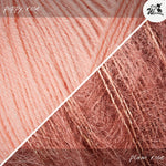 Den RibWave Sweater von Joanna Aug strickst Du nahtlos von oben nach unten mit Nadelstärke 4mm (Bündchen 3mm). Die Passe mit überzogenen Schultern strickst Du jeweils für sich in Reihen, am Hals sorgen German short Rows (verkürzte Reihen) für eine bessere Passform. Ab den Armausschnitten geht’s dann weiter in Runden. Für die Ärmel nimmst Du am Schluss aus den Armausschnitten Maschen auf und strickst sie jeweils für sich herunter. Joanna’s Bluse ist gestrickt aus Merino in der Farbe cloud / sky zusammen mit Soft Silk Mohair soft rose / pudderrosa. Das Merinogarn von Knitting for Olive ist selbstverständlich mulesingfrei und wird in Kombination mit Soft Silk Mohair von Knitting for Olive leicht flauschig und herrlich leicht. Beide Garne sind ökotex zertifiziert.