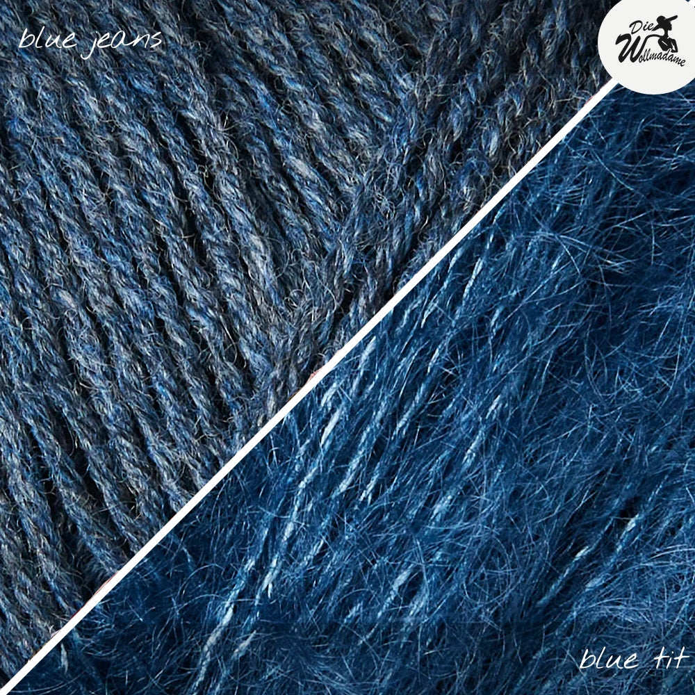 Den RibWave Sweater von Joanna Aug strickst Du nahtlos von oben nach unten mit Nadelstärke 4mm (Bündchen 3mm). Die Passe mit überzogenen Schultern strickst Du jeweils für sich in Reihen, am Hals sorgen German short Rows (verkürzte Reihen) für eine bessere Passform. Ab den Armausschnitten geht’s dann weiter in Runden. Für die Ärmel nimmst Du am Schluss aus den Armausschnitten Maschen auf und strickst sie jeweils für sich herunter. Joanna’s Bluse ist gestrickt aus Merino in der Farbe cloud / sky zusammen mit Soft Silk Mohair soft rose / pudderrosa. Das Merinogarn von Knitting for Olive ist selbstverständlich mulesingfrei und wird in Kombination mit Soft Silk Mohair von Knitting for Olive leicht flauschig und herrlich leicht. Beide Garne sind ökotex zertifiziert.