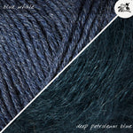Den RibWave Sweater von Joanna Aug strickst Du nahtlos von oben nach unten mit Nadelstärke 4mm (Bündchen 3mm). Die Passe mit überzogenen Schultern strickst Du jeweils für sich in Reihen, am Hals sorgen German short Rows (verkürzte Reihen) für eine bessere Passform. Ab den Armausschnitten geht’s dann weiter in Runden. Für die Ärmel nimmst Du am Schluss aus den Armausschnitten Maschen auf und strickst sie jeweils für sich herunter. Joanna’s Bluse ist gestrickt aus Merino in der Farbe cloud / sky zusammen mit Soft Silk Mohair soft rose / pudderrosa. Das Merinogarn von Knitting for Olive ist selbstverständlich mulesingfrei und wird in Kombination mit Soft Silk Mohair von Knitting for Olive leicht flauschig und herrlich leicht. Beide Garne sind ökotex zertifiziert.
