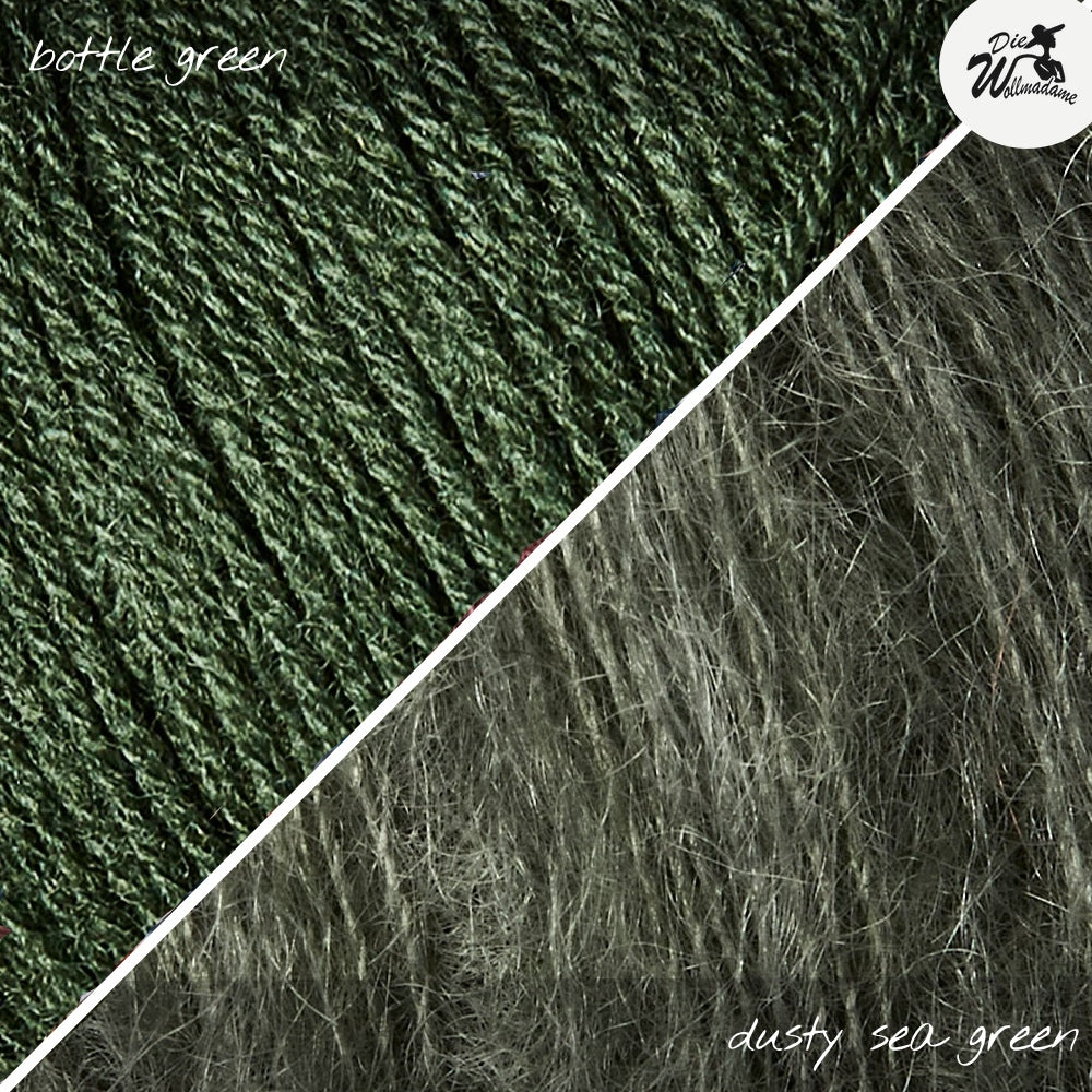 Den RibWave Sweater von Joanna Aug strickst Du nahtlos von oben nach unten mit Nadelstärke 4mm (Bündchen 3mm). Die Passe mit überzogenen Schultern strickst Du jeweils für sich in Reihen, am Hals sorgen German short Rows (verkürzte Reihen) für eine bessere Passform. Ab den Armausschnitten geht’s dann weiter in Runden. Für die Ärmel nimmst Du am Schluss aus den Armausschnitten Maschen auf und strickst sie jeweils für sich herunter. Joanna’s Bluse ist gestrickt aus Merino in der Farbe cloud / sky zusammen mit Soft Silk Mohair soft rose / pudderrosa. Das Merinogarn von Knitting for Olive ist selbstverständlich mulesingfrei und wird in Kombination mit Soft Silk Mohair von Knitting for Olive leicht flauschig und herrlich leicht. Beide Garne sind ökotex zertifiziert.