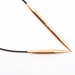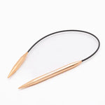 Diese elegante, asymmetrische Rundstricknadel im angesagten Roségold-Finish verbindet Stil und Komfort: Die eine Spitze ist minimal kürzer als die andere – so liegt die Nadel weich und ergonomisch in der Hand. Hergestellt aus leichtem, eloxiertem Aluminium für ein angenehmes Tragegefühl, perfekt für kleine Projekte wie Socken oder Ärmelbündchen etc.