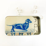 Ein treuer Blick, lange Ohren und eine charmant lange Schnauze – diese liebevoll gestaltete Blechdose zeigt einen fröhlichen Dackel in detailreicher Illustration. Ideal, um Maschenmarkierer, Stopfnadeln oder andere kleine Handarbeitsutensilien sicher aufzubewahren. Der leichtgängige Schiebedeckel ist mit ungiftigem Harz versiegelt, das das Motiv schützt und ihm einen sanften Glanz verleiht.