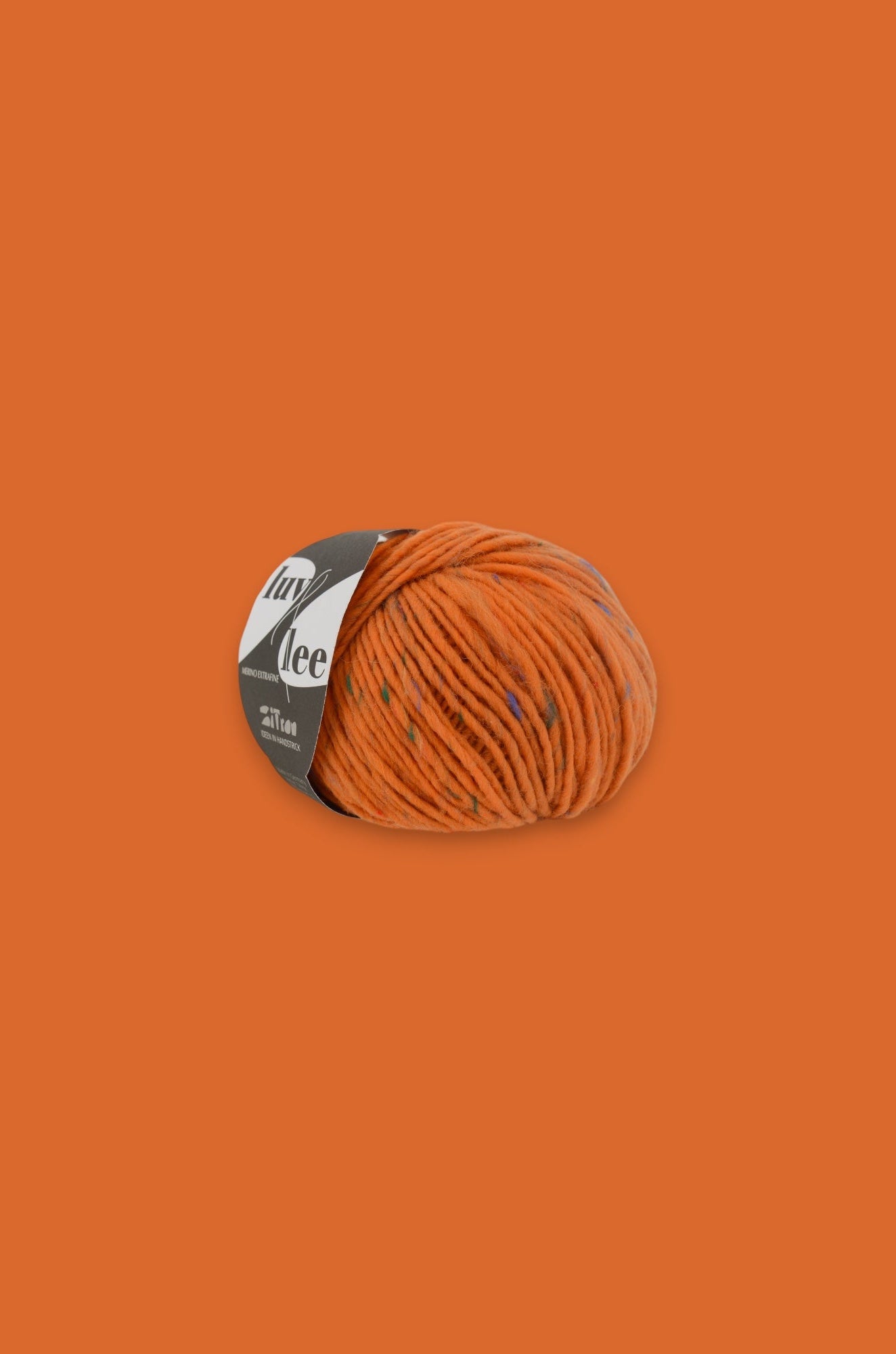 Farbe 2605 ist ein intensives Kürbis-Orange mit warmer Ausstrahlung. In der Qualität Luv & Lee von Atelier Zitron wird dieser Grundton durch den Tweed-Effekt mit Sprenkeln in Blau, Grün, Rot und Gelb belebt. Das Ergebnis ist ein fröhlicher, vielseitiger Farbton, der Wärme und Lebendigkeit vereint und Projekten eine natürliche, zugleich frische Note gibt.