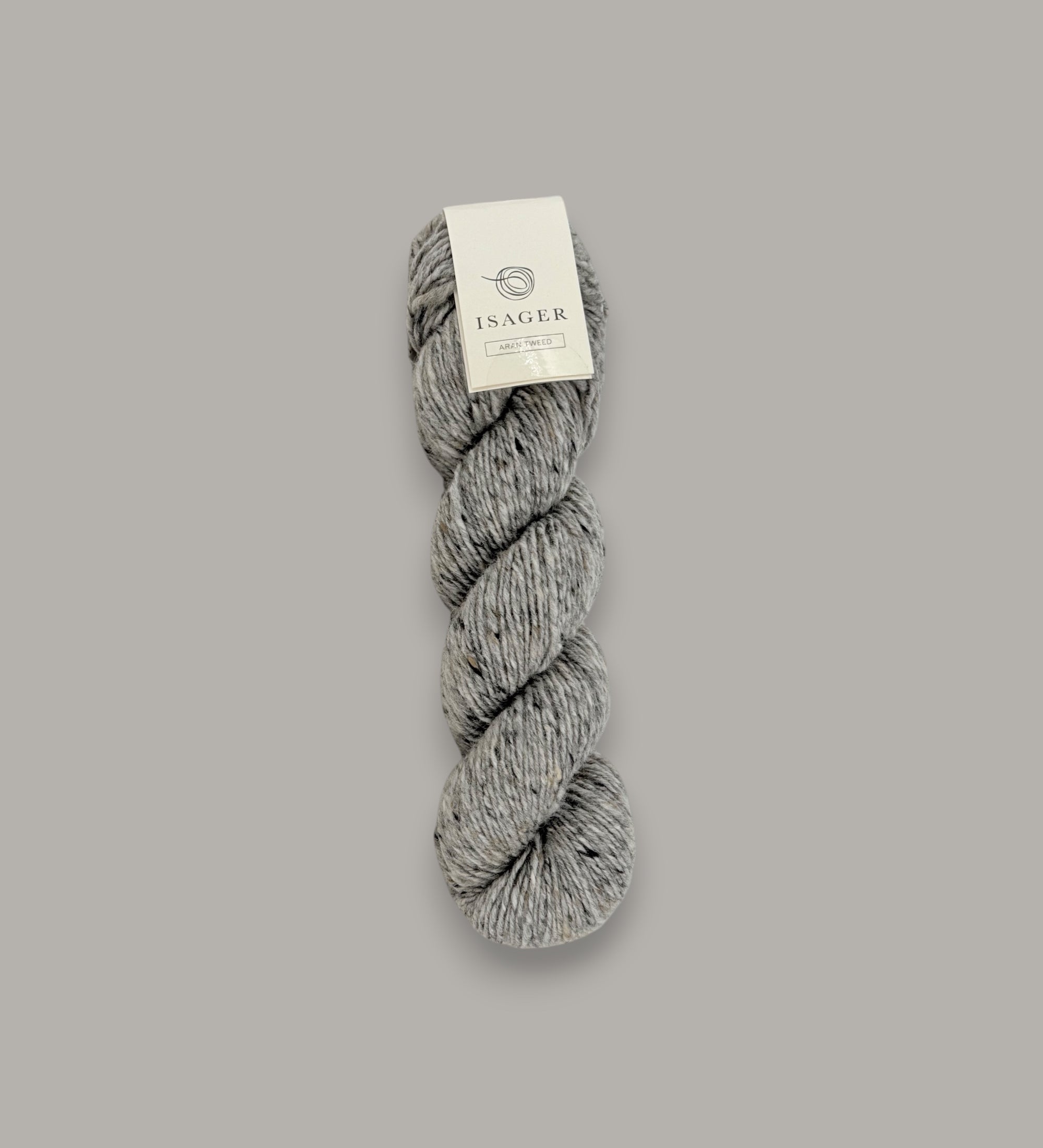 Isager Aran Tweed ist ein klassisches, charakterstarkes Garn aus 100 % Schurwolle, das in Irland gesponnen und exklusiv für Isager gefärbt wird. Mit seiner typischen Tweed-Optik – durchzogen von feinen, farbigen Noppen – vereint es rustikalen Charme mit edler Zurückhaltung. Das Garn hat einen robusten Griff, ist dabei aber angenehm zu tragen und entwickelt mit dem Tragen und Waschen eine dichte, griffige Struktur.