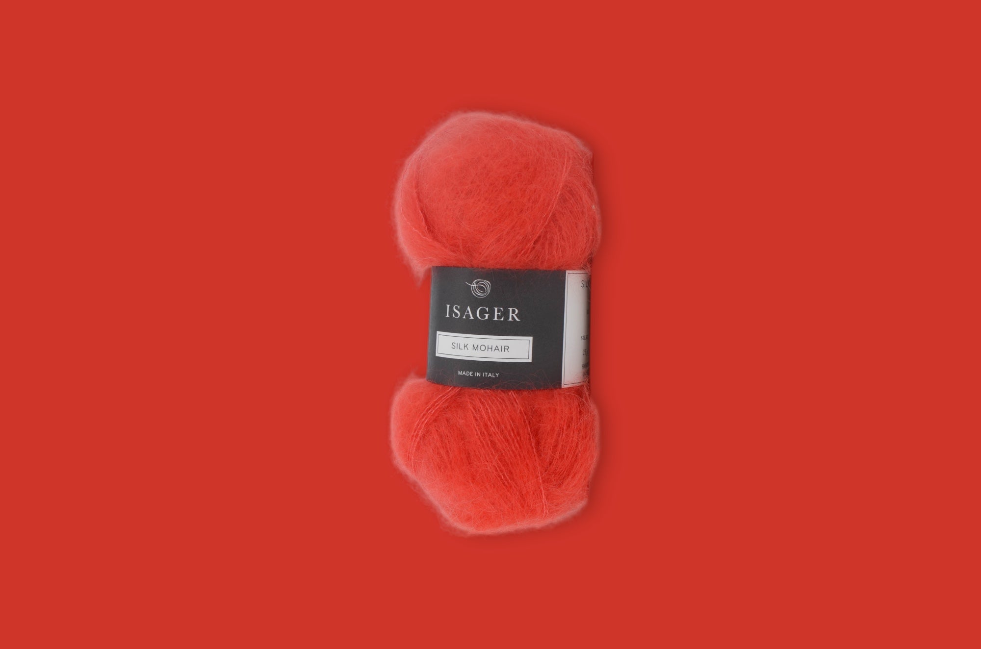 Silk Mohair von Isager ist ein edles Garn aus 75 % Super-Kid-Mohair und 25 % Seide – leicht, fluffig und mit einem dezenten, natürlichen Glanz. Es wird in Italien gesponnen und gefärbt und überzeugt durch seine zarte Haptik und luftige Textur.