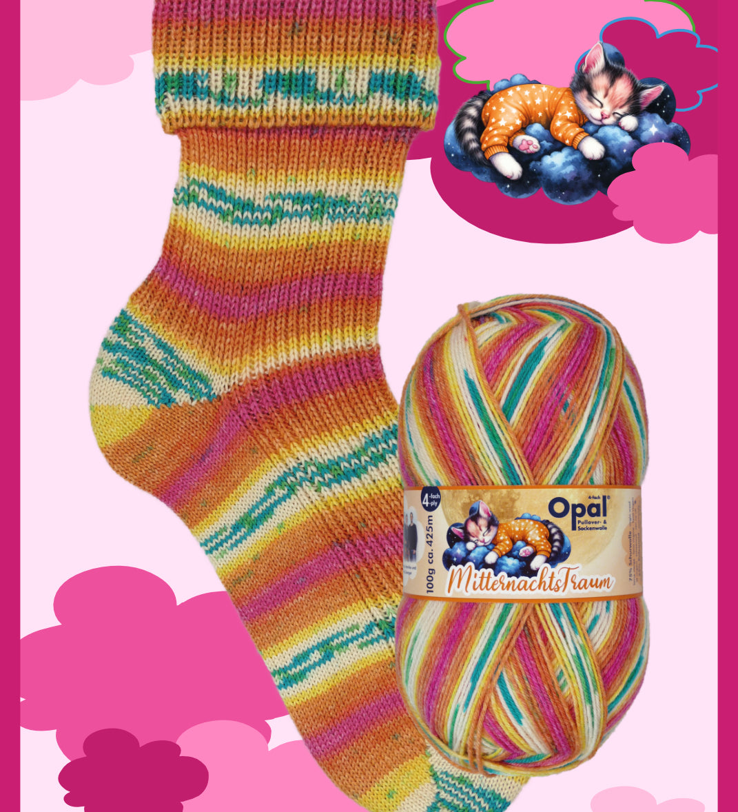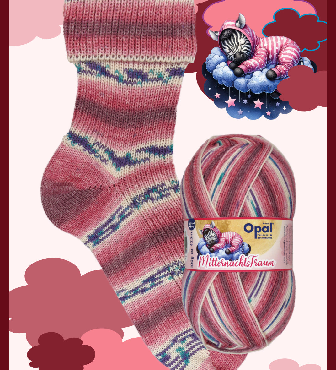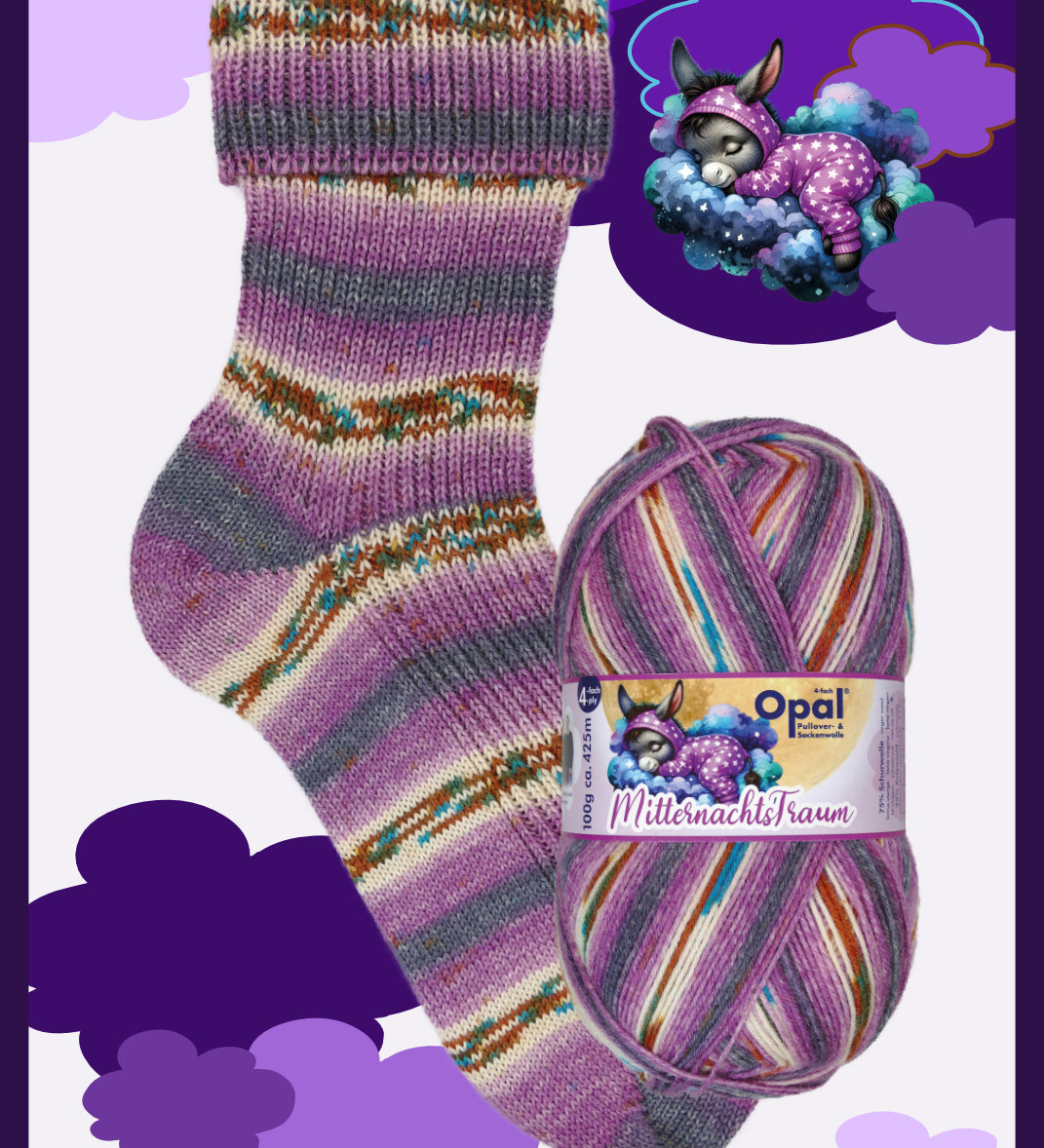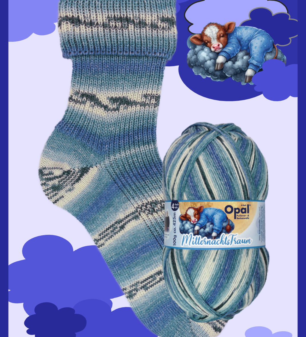 Opal Sockenwolle steht seit Jahren für farbstarke Designs, zuverlässige Qualität und ein angenehmes Strickerlebnis. Gefertigt in Deutschland aus 75 % superwash, mulesingfreier Schurwolle und 25 % Polyamid, ist sie besonders strapazierfähig, formstabil und maschinenwaschbar – ideal für den täglichen Einsatz. Die Wolle ist in verschiedenen Stärken erhältlich: 4-fädig für klassische Socken und feine Accessoires, 6-fädig für etwas dickere Lieblingsstücke und 8-fädig für wärmende Projekte, die schnell von der Nadel gehen. Typisch für Opal sind die selbstmusternden Farbverläufe, die beim Stricken lebendige Streifen, Blockeffekte oder fantasievolle Muster entstehen lassen – ganz ohne Zählvorlage. Besonders beliebt sind die fortlaufenden Kollektionen „Schafpate“ (Unterstützung der traditionellen Wanderschäferei) und „Beauty“ (Veredlung mit Edelweiß-Extrakt), die regelmäßig mit neuen Farben und Motiven erscheinen und so immer wieder frische Inspiration bieten. Ob für Socken, Mützen, Schals oder Pullover – Opal Sockenwolle überzeugt durch kreative Farbgestaltung, angenehmen Tragekomfort und hohe Langlebigkeit.