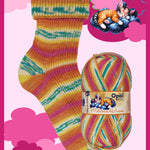 Bitte beachte, dass der Farbrapport bei größeren Strickstücken wie Pullovern oder Mützen anders ausfallen kann als bei Socken, da sich das Muster je nach Maschenanzahl unterschiedlich entwickelt. Dies kann deinen Projekten jedoch einen individuellen und interessanten Look verleihen.