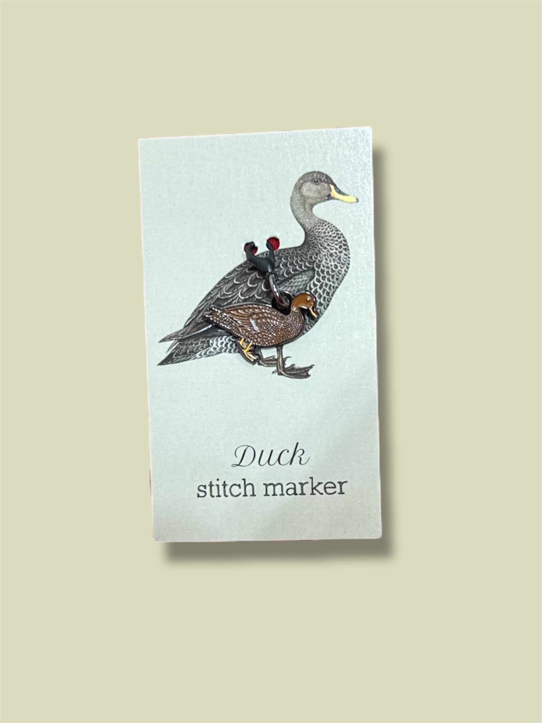 Der Maschenmarkierer „Duck“ ist ein liebevolles Detail für dein Strick- oder Häkelprojekt – mit seiner fein gezeichneten Emaille-Ente in warmen Braun- und Gelbtönen erinnert er an klassische Naturillustrationen.
