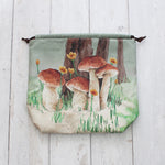 Dieser Projektbeutel mit Illustration von The Blue Rabbit House ist nicht nur praktisch, sondern auch ein echter Hingucker. Die Illustration zeigt einen Frosch vor seinem kleinen Pilzhaus – liebevoll und detailreich gestaltet das Freude nicht nur in den Strick- und Häkelalltag bringt.