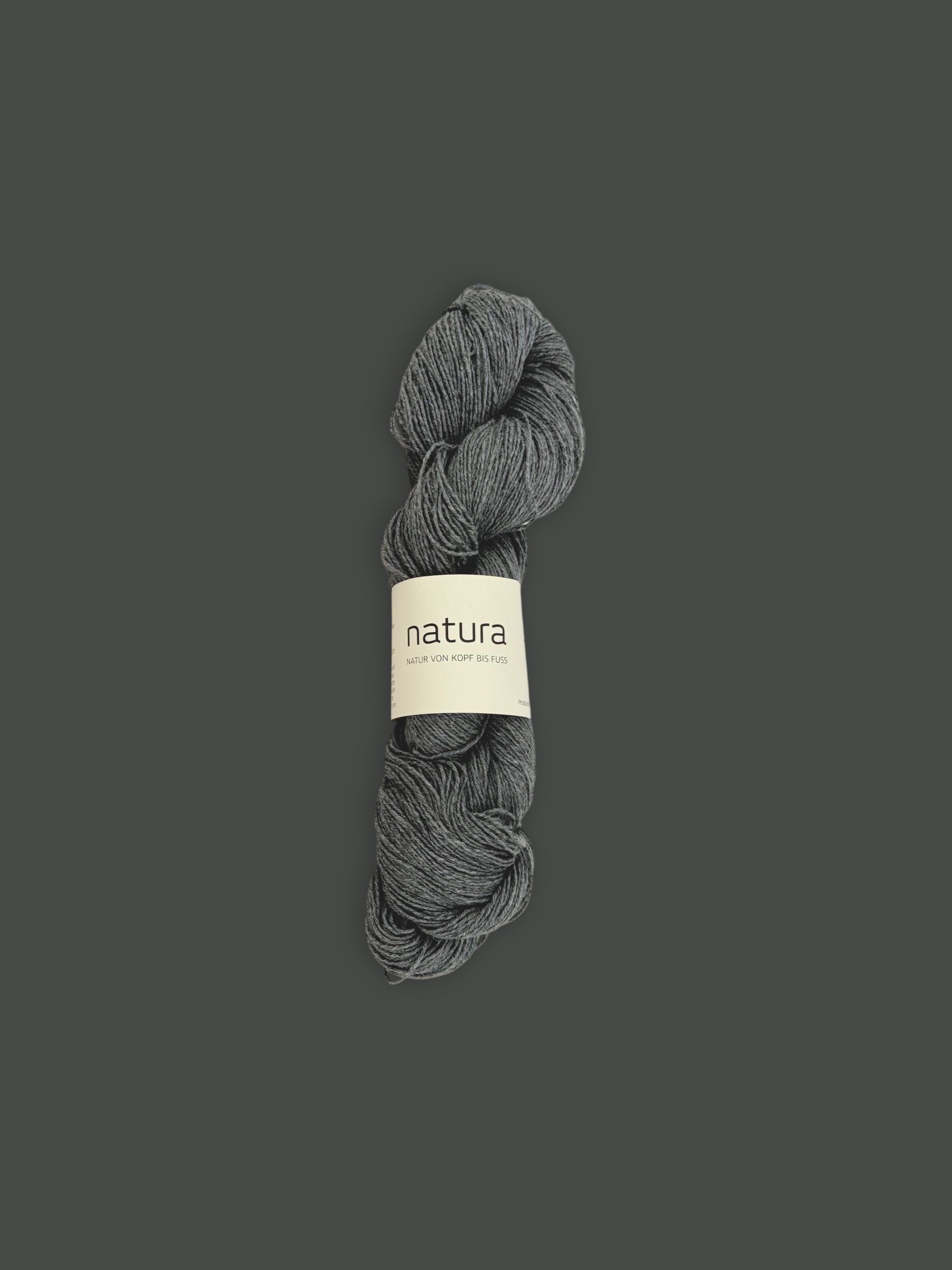 Farbe 2410 ist ein dunkles, gedämpftes Grau mit einem leicht grünlichen Unterton – kühl, ruhig und ausgewogen. Die feine Melierung bringt dezente Bewegung ins Maschenbild und verleiht der Nuance eine zurückhaltende Tiefe. Die Farbwirkung bleibt klar und unaufdringlich. Eine vielseitige Farbe für Projekte mit reduzierter, natürlicher Farbigkeit und strukturierter Eleganz.