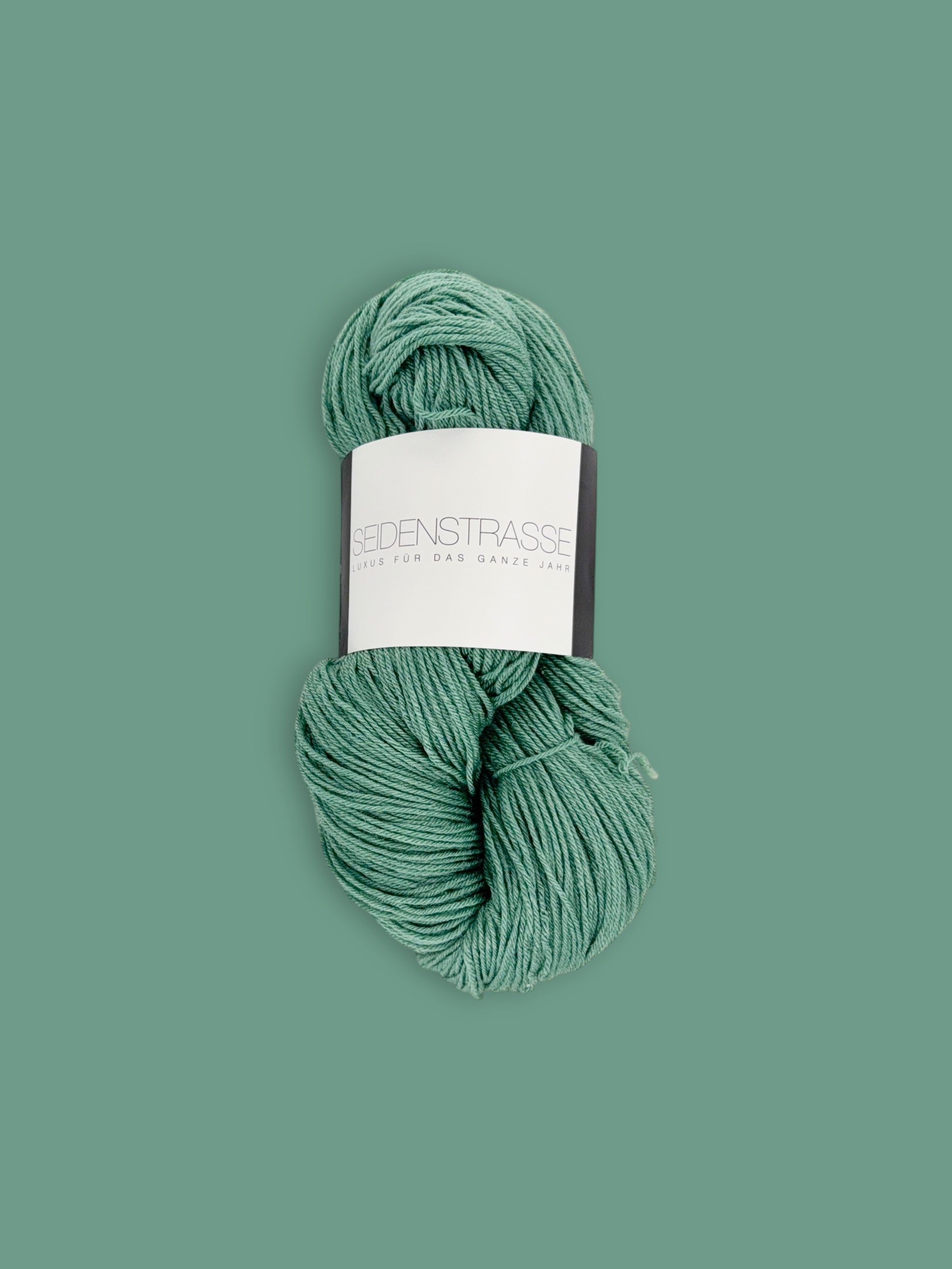 In der Qualität Seidenstraße von Atelier Zitron bringt der feine Seidenschimmer eine elegante Tiefe ins Maschenbild. Das Licht legt sich weich auf die Oberfläche und verleiht dem Farbton eine zurückhaltende Leuchtkraft – fast wie Seewasser bei bedecktem Himmel.