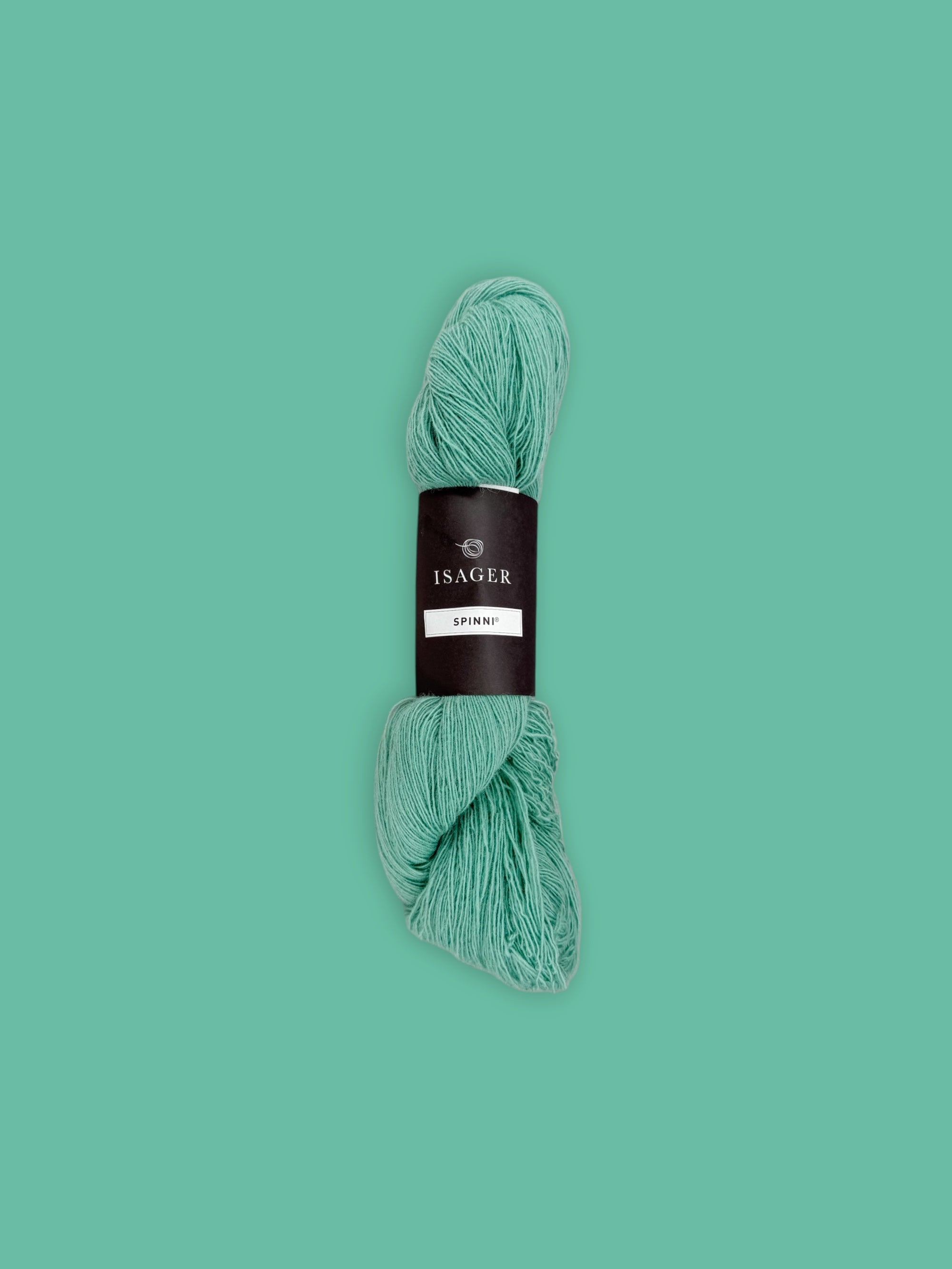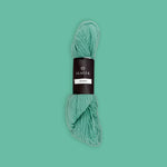 Ein frisches, kühles Grün mit feiner Klarheit. Die Farbe erinnert an Salbeigrün mit mehr Leuchtkraft oder oxidiertes Kupfer im Licht – ruhig, belebt und angenehm natürlich. Die matte, fein gesponnene Garnstruktur dämpft den Ton sanft ab und macht ihn ideal für klare Projekte mit moderner Frische.