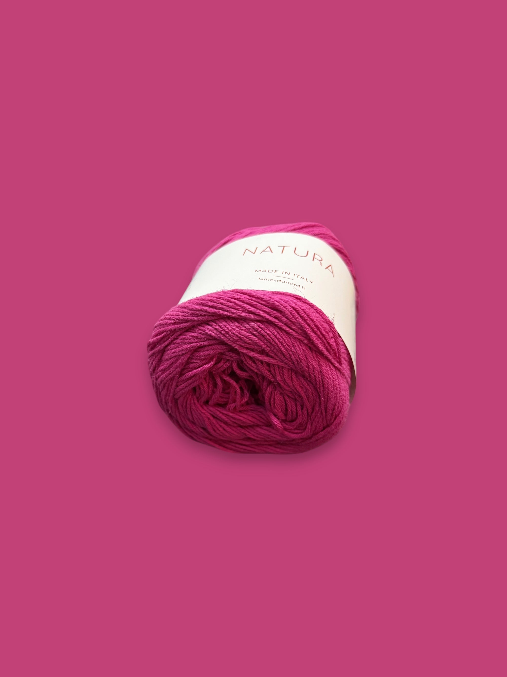 Die Natura von Laines du Nord ist ein sommerliches Naturgarn aus 50 % Baumwolle und 50 % Hanf. Diese Kombination verbindet die weiche, angenehme Haptik der Baumwolle mit der charakteristischen, leicht rustikalen Struktur des Hanfs. Dadurch entsteht ein Garn mit natürlichem Ausdruck und einem klaren Maschenbild.