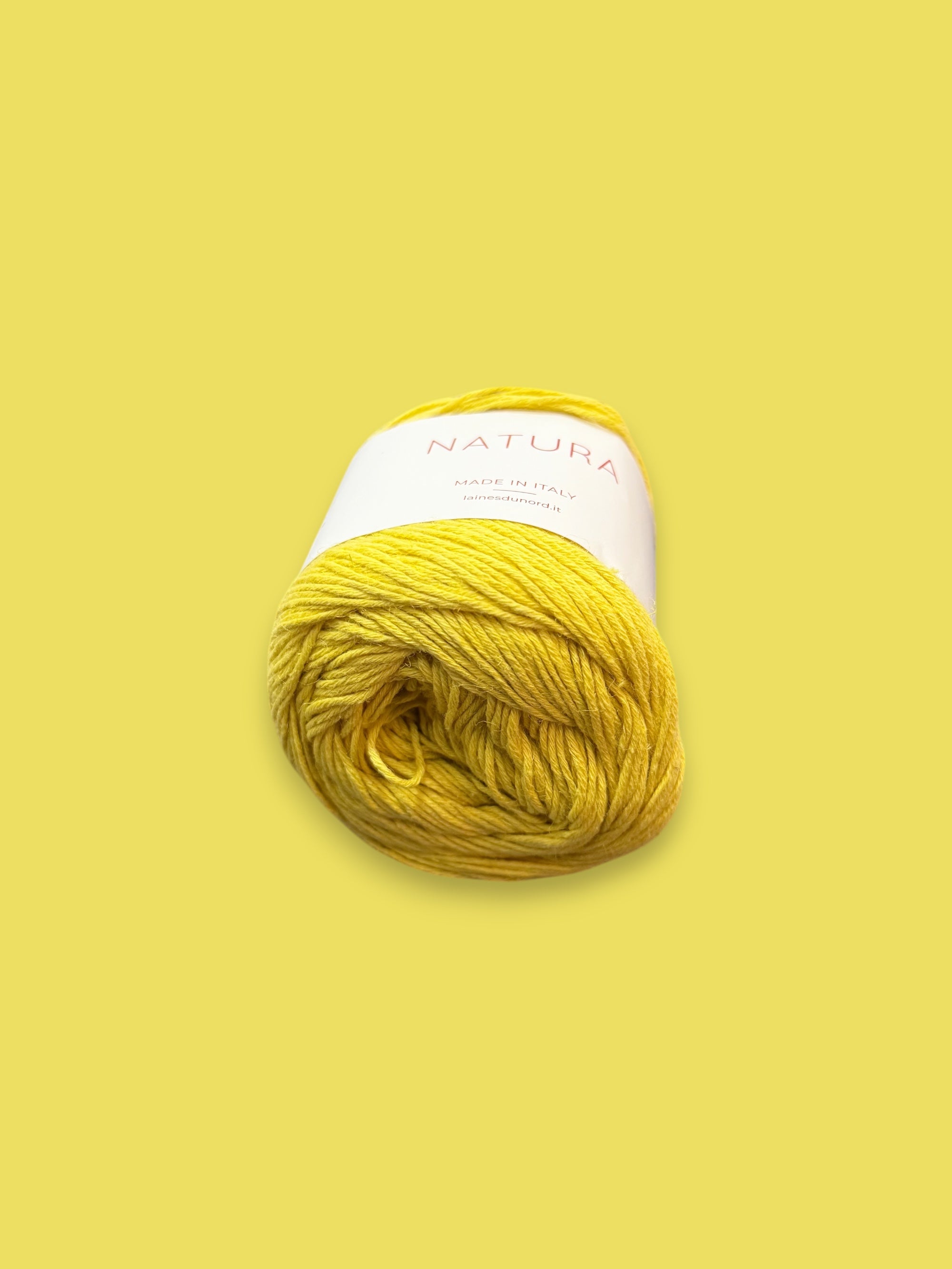 Die Natura von Laines du Nord ist ein sommerliches Naturgarn aus 50 % Baumwolle und 50 % Hanf. Diese Kombination verbindet die weiche, angenehme Haptik der Baumwolle mit der charakteristischen, leicht rustikalen Struktur des Hanfs. Dadurch entsteht ein Garn mit natürlichem Ausdruck und einem klaren Maschenbild.