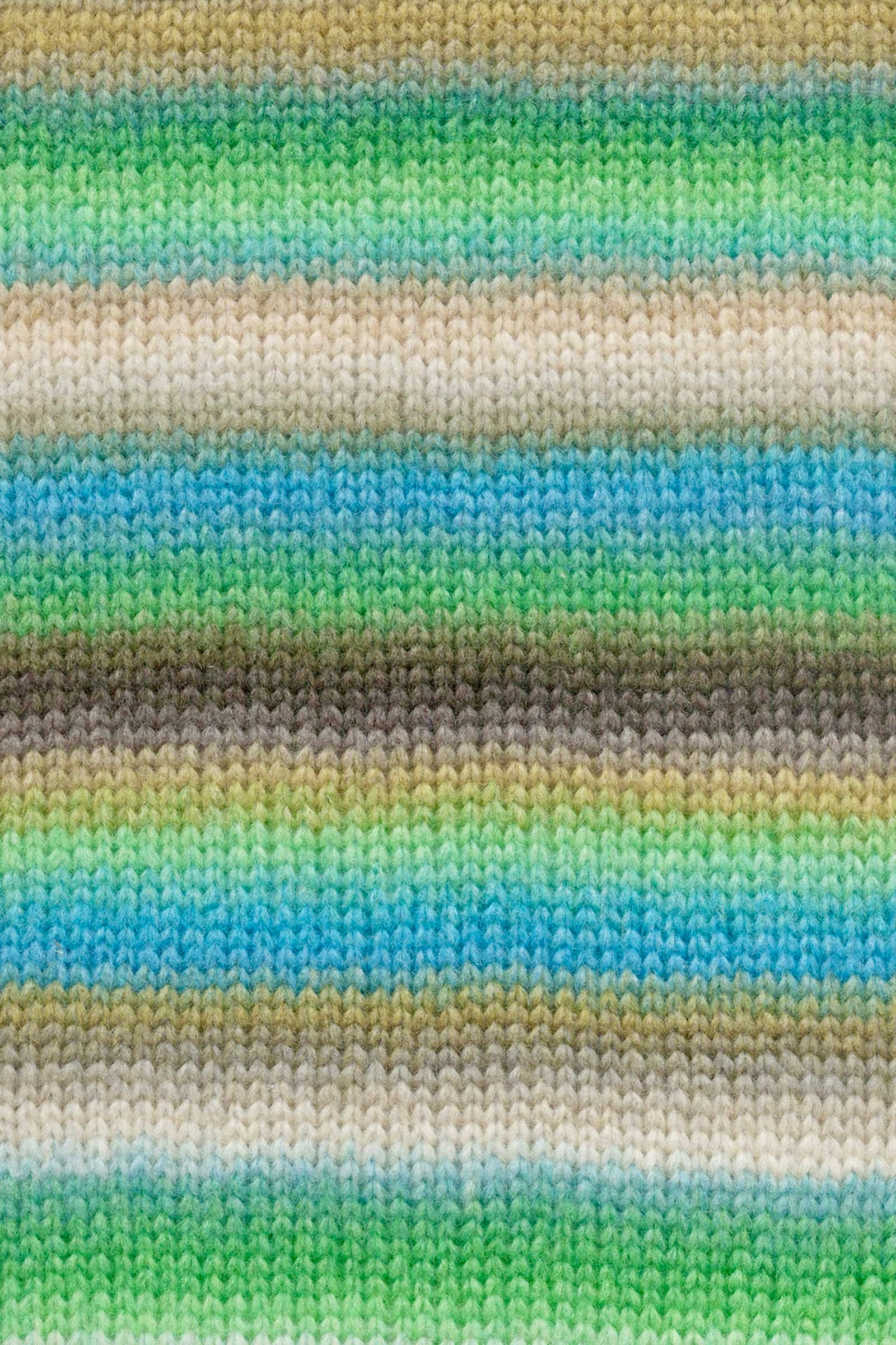 Dieser Farbverlauf verbindet frisches Grün, klares Türkis, sanftes Beige, warmes Oliv und erdiges Braun – wie das Spiel von Licht und Schatten in einer weiten Landschaft, mit dem Leuchten von Wasserflächen und dem stillen Grund von Moos und Stein. Die Farben wirken lebendig, kontrastreich und gleichzeitig harmonisch – ideal für Projekte mit natürlicher Tiefe und klarer Farbwirkung. Der Wechsel zwischen warmen und kühlen Tönen bringt Bewegung ins Strickbild, ohne aufdringlich zu wirken. Eine charaktervolle Wahl für alle, die kräftige, naturinspirierte Farben mit moderner Leichtigkeit verbinden möchten.