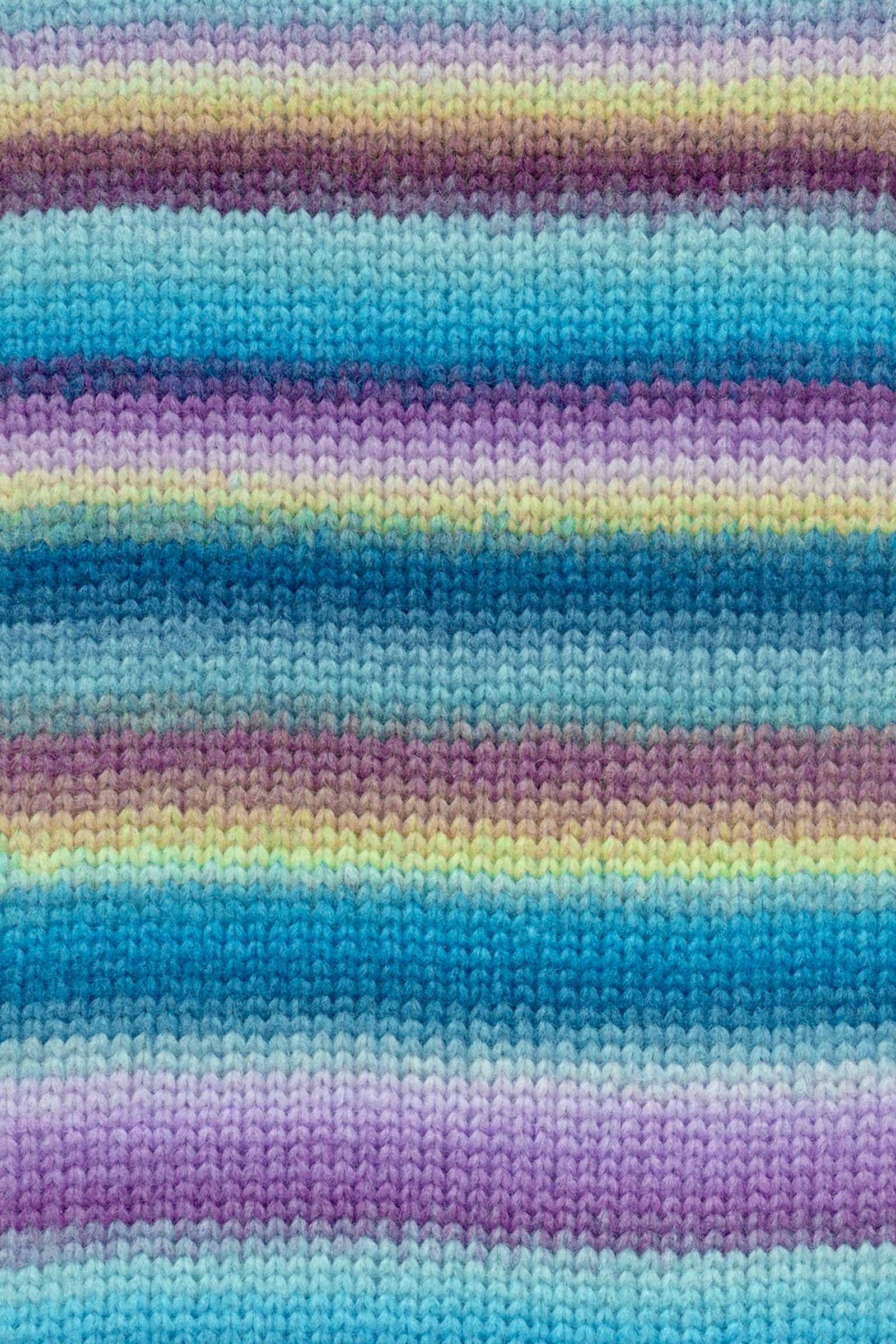 Dieser Farbverlauf verbindet leuchtendes Türkis, tiefes Petrol, sanftes Flieder, warmes Beeren-Violett und feine Akzente in Limettengelb und Sand – wie das Farbspiel von Wasser und Stein, Lavendel im Schatten oder verblasste Glasscherben im Gegenlicht. Die Wirkung ist frisch, kühl und kraftvoll – ideal für Projekte mit klarer Farbwirkung und lebendigem Maschenbild. Die Farbübergänge wechseln spannungsvoll zwischen kühlen und warmen Tönen und verleihen dem Projekt Tiefe und Ausdruck. Eine besondere Wahl für alle, die starke Farben mit harmonischem Verlauf schätzen.