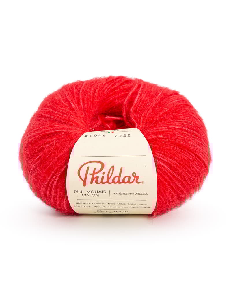 Phil Mohair Coton von Phildar ist ein hochwertiges Garn aus 100 % natürlichen Fasern, bestehend aus 60 % Kid-Mohair und 40 % Baumwolle. Diese Kombination vereint die luxuriöse Leichtigkeit von Mohair mit der Atmungsaktivität und Weichheit von Baumwolle, was das Garn ideal für vielseitige Strickprojekte macht.