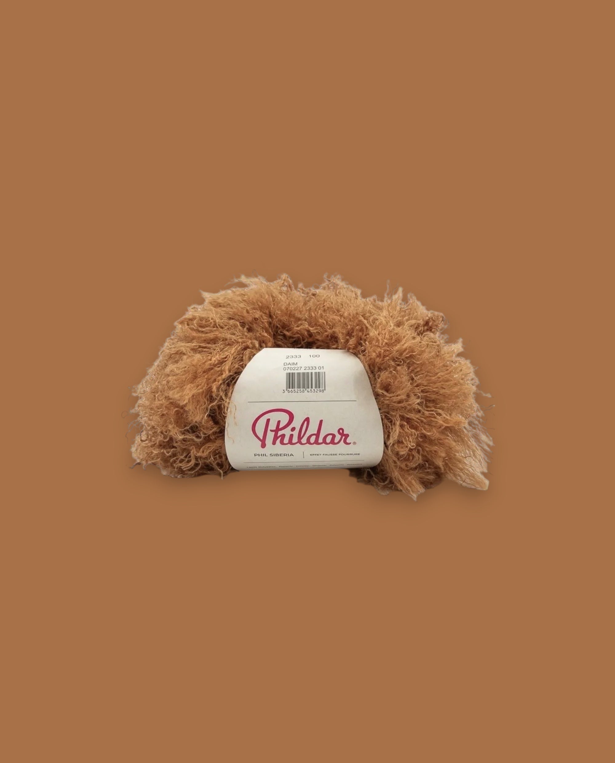 Farbe Daim ist ein warmer, karamellbrauner Ton mit goldigen Untertönen und sanfter Tiefe. In der Fransengarn-Qualität Phil Siberia entfaltet er einen besonders lebendigen Charakter: Die feinen, weichen Fransen fangen das Licht unterschiedlich ein, wodurch ein sanftes Hell-Dunkel-Spiel mit dezentem Schimmer entsteht – charmant, weich und einladend.