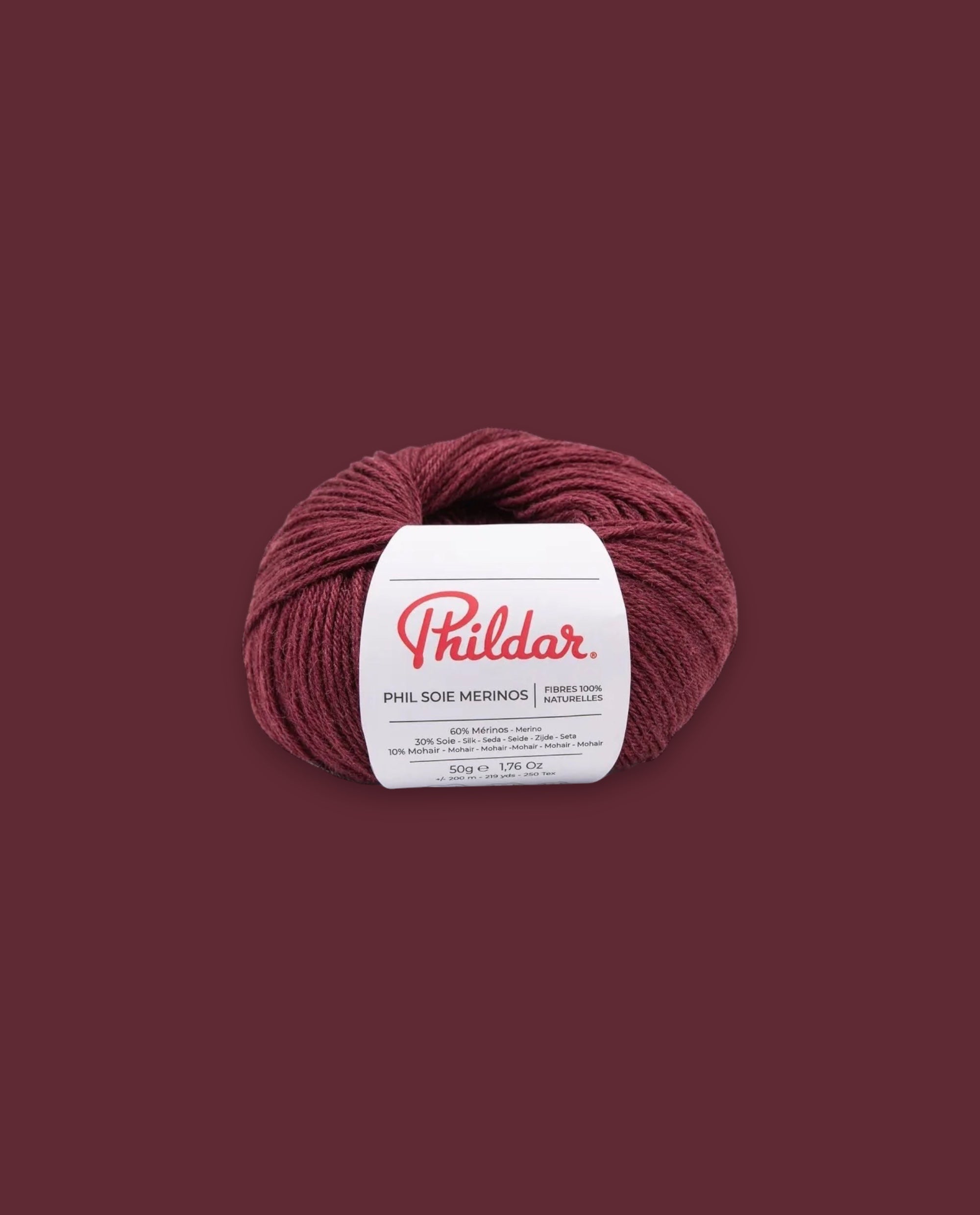 Farbe grenat ist ein tiefes, gedecktes Beerenrot mit harmonischer Tiefe und edler Präsenz. In der Qualität Phil Soie Merino von Phildar entsteht daraus ein glattes, gleichmäßiges Maschenbild mit feinem Schimmer, der dem Ton eine luxuriöse Wirkung verleiht – stilvoll, sinnlich und vielseitig einsetzbar.