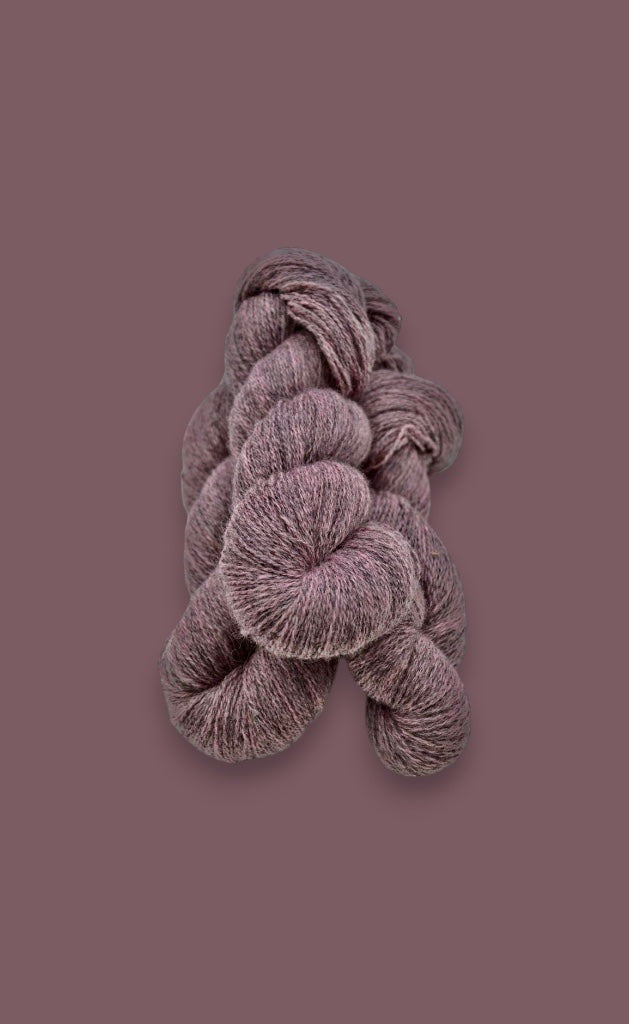 Farbe 6/2-1113 ist ein gedecktes, dunkles Beeren-Rosa auf meliert grauem Gotland-Grund, das zugleich dezent und ausdrucksstark wirkt.