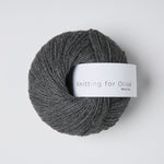 Den Cinema Sweater von Veronika Lindberg strickst Du nahtlos von oben nach unten mit Nadelstärke 4,5mm (Bündchen 3mm) doppelfädig. Die Passe strickst Du mit Raglanzunahmen, ein paar verkürzte Reihen nach dem doppelten Halsbündchen sorgen für eine angenehme Passform. Veronika’s Pullover ist gestrickt aus Merino in der Farbe pearl gray /perlegrå. Die mulesingfreie Merinowolle von Knitting for Olive ist dank ihrer langen Lauflänge herrlich leicht, auch wenn man sie doppelfädig verarbeitet.