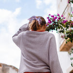 Den Cinema Sweater von Veronika Lindberg strickst Du nahtlos von oben nach unten mit Nadelstärke 4,5mm (Bündchen 3mm) doppelfädig. Die Passe strickst Du mit Raglanzunahmen, ein paar verkürzte Reihen nach dem doppelten Halsbündchen sorgen für eine angenehme Passform. Veronika’s Pullover ist gestrickt aus Merino in der Farbe pearl gray /perlegrå. Die mulesingfreie Merinowolle von Knitting for Olive ist dank ihrer langen Lauflänge herrlich leicht, auch wenn man sie doppelfädig verarbeitet.