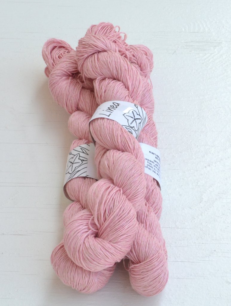 Das Moon Set Tee von Ozetta Knitwear strickst Du glatt rechts nahtlos von oben nach unten mit Nadelstärke 3,25mm (Maschenaufnahme mit 2,75mm). Bei der Passe mit sogenannten "Drop-Shoulders" strickst Du jeweils das Vorder- und Rückenteil für sich in Reihen, am Hals sorgen German short Rows (verkürzte Reihen) für eine bessere Passform. Ab den Armausschnitten geht’s dann weiter in Runden. Für die Ärmel nimmst Du am Schluss aus den Armausschnitten Maschen auf und strickst sie jeweils für sich herunter. Alle Kanten bekommen einen saubere i-cord Abschluss. Hailey’s Moon Set Tee ist gestrickt aus Pure Silk, wir haben uns dagegen hier für die Leinen-Baumwoll-Mischung "Linea" von Ullcentrum in der Farbe 487 (lila meliert) entschieden.