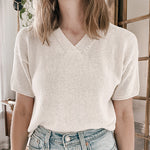 Das Moon Set Tee von Ozetta Knitwear strickst Du glatt rechts nahtlos von oben nach unten mit Nadelstärke 3,25mm (Maschenaufnahme mit 2,75mm). Bei der Passe mit sogenannten "Drop-Shoulders" strickst Du jeweils das Vorder- und Rückenteil für sich in Reihen, am Hals sorgen German short Rows (verkürzte Reihen) für eine bessere Passform. Ab den Armausschnitten geht’s dann weiter in Runden. Für die Ärmel nimmst Du am Schluss aus den Armausschnitten Maschen auf und strickst sie jeweils für sich herunter. Alle Kanten bekommen einen saubere i-cord Abschluss. Hailey’s Moon Set Tee ist gestrickt aus Pure Silk, wir haben uns dagegen hier für die Leinen-Baumwoll-Mischung "Linea" von Ullcentrum in der Farbe 487 (lila meliert) entschieden.