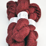 Das Moon Set Tee von Ozetta Knitwear strickst Du glatt rechts nahtlos von oben nach unten mit Nadelstärke 3,25mm (Maschenaufnahme mit 2,75mm). Bei der Passe mit sogenannten "Drop-Shoulders" strickst Du jeweils das Vorder- und Rückenteil für sich in Reihen, am Hals sorgen German short Rows (verkürzte Reihen) für eine bessere Passform. Ab den Armausschnitten geht’s dann weiter in Runden. Für die Ärmel nimmst Du am Schluss aus den Armausschnitten Maschen auf und strickst sie jeweils für sich herunter. Alle Kanten bekommen einen saubere i-cord Abschluss. Hailey’s Moon Set Tee ist gestrickt aus Pure Silk, wir haben uns dagegen hier für die Leinen-Baumwoll-Mischung "Linea" von Ullcentrum in der Farbe 487 (lila meliert) entschieden.